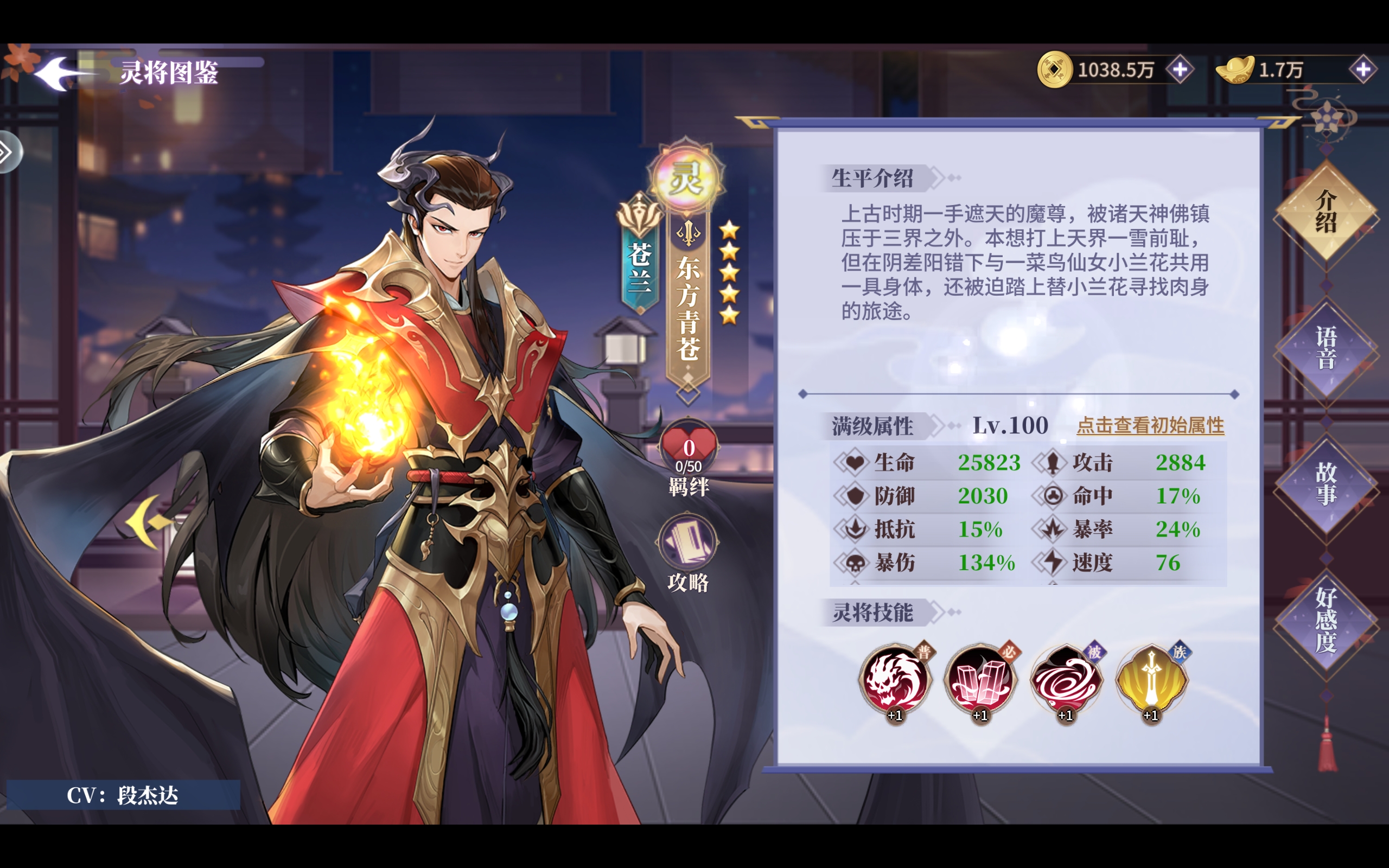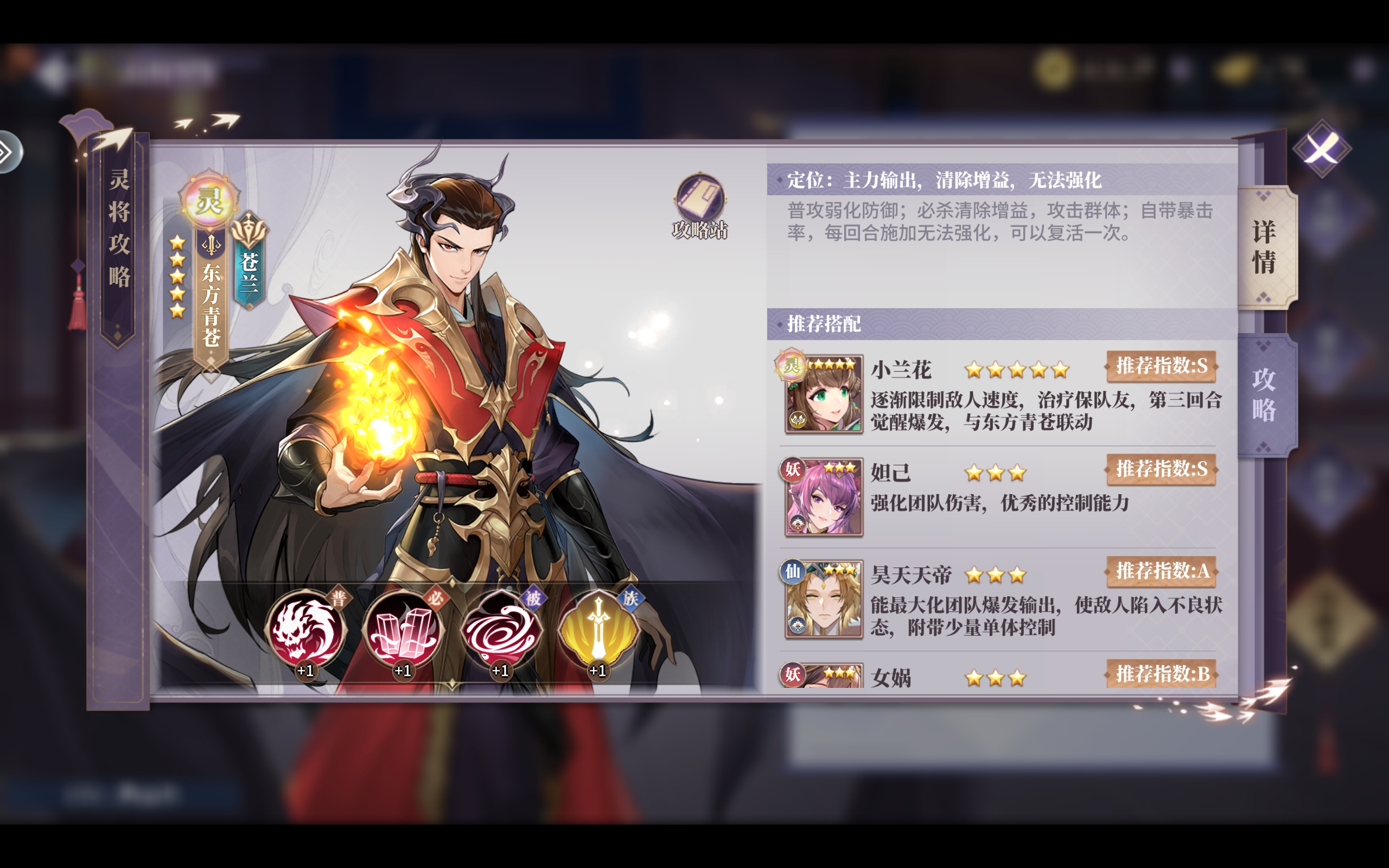 而东方青苍的被动技能则更加逆天,这个游戏中非常重要的暴击率,东方青苍直接倍率提升。并且开局直接使两个敌人无法强化,也就是说,假如给到敌方主C身上,在没有去除这一效果之前,主C无法得到任何加成。更逆天的在于复活,假如只是复活其实意义不大,因为妖族女娲可以提供复活效果,橙卡哪吒也有复活特性,但是东方青苍不仅可以回复70%血量(同样复活特性的哪吒只有40%),在上场小兰花的情况下还能够无视禁止复活特性,也就是无论是追魂的禁止复活,亦或者是部分神兵所提供的禁止复活效果都不会起到作用。这就意味着原本的体系彻底被打破(在优先级上禁止复活必须要大于复活,否则这一特性将没有意义),东方青苍的续航能力或许远超我们想象。