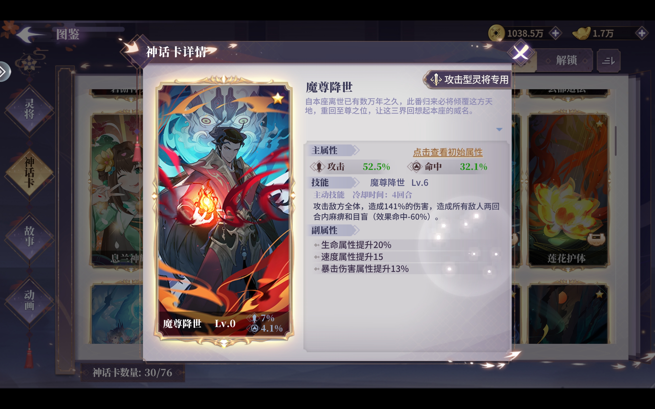 东方青苍的神话卡则更加全能且效果卓著并且用处极大。随着后羿的出现我们不难注意到以后羿李靖幽王杨戬等所组建的人族追击反击反伤队即将崛起,而东方青苍神话卡魔尊降世可以对敌方全体造成麻痹效果,而李靖大招所提供的霸体是不能够解决麻痹效果的,也就是说只要魔尊降世能够成功发动,人族追击队的专属特性将不再拥有用武之地。同时他还提供60%效果命中减益效果,这也就意味着以灼烧作为主要输出手段的人族灼烧队与以中毒流血作为主要输出手段的妖族状态队也会被大幅度削弱。