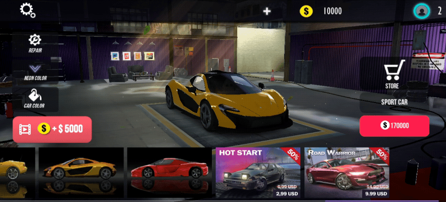 ✨赛车的类型非常丰富,你可以花费金币💰在商店中购买全新车辆🚗🚕;