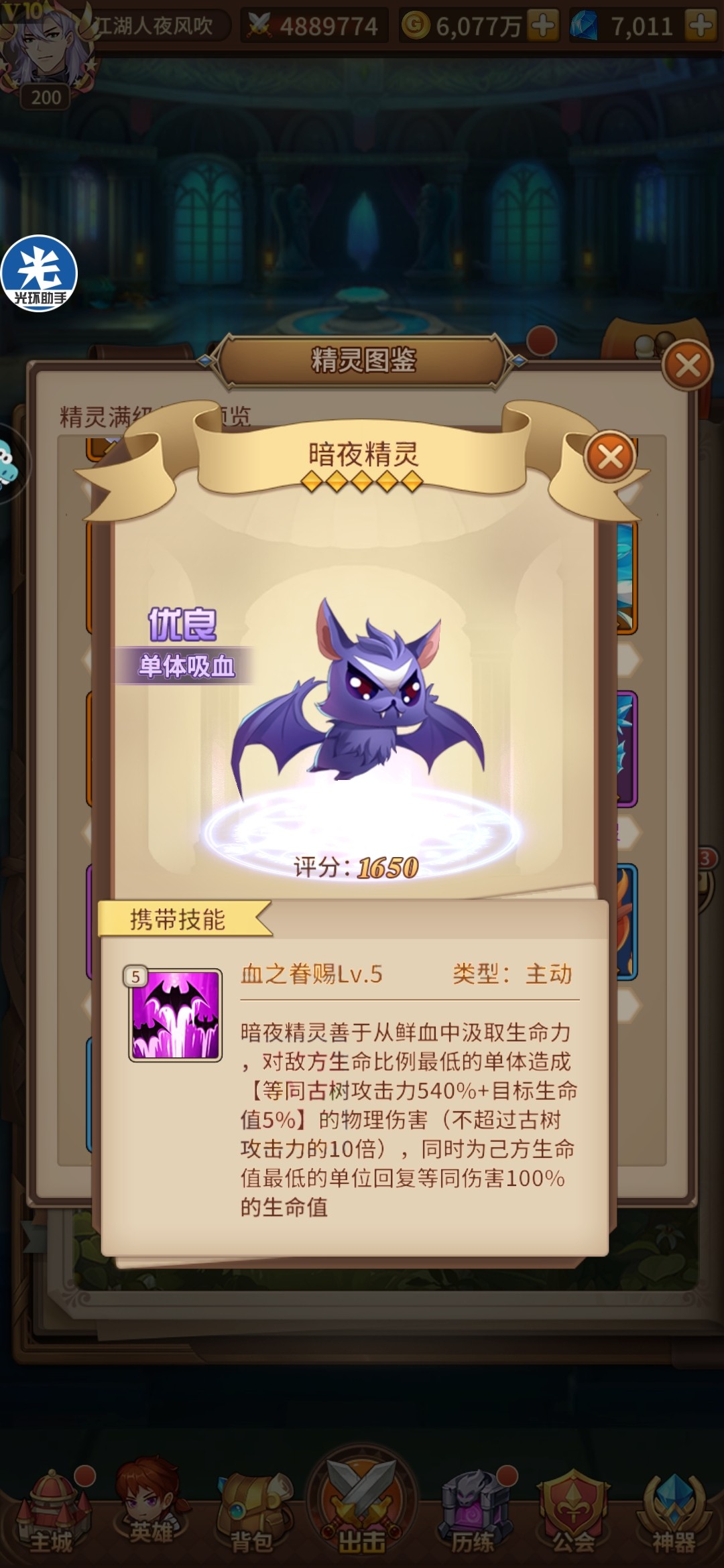 站位选择推荐二号位,三号位,这款精灵其实我是不想归为常用精灵中的,因为但凡有了好的选择,都不会去选择暗夜精灵,但是因为新手比较多,这款精灵用的人还是比较多,建议你们在刚开始的时候没有别的精灵时可以去用用,这个精灵就是相当于低配版的幻界精灵,你古树等级低又打不出多少伤害,你古树等级高了谁会去选择使用暗夜精灵。
