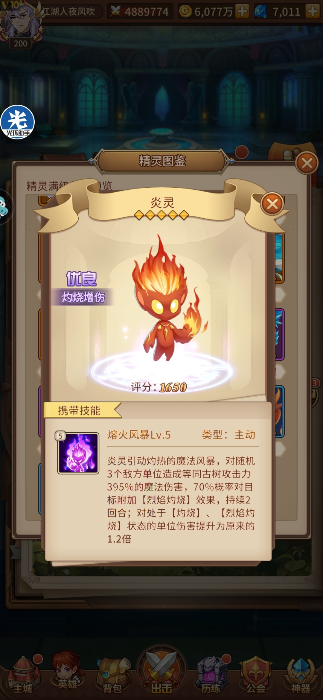 站位选择推荐一号位,四号位,炎灵这款精灵很适合烧烤队阵容,叠加更多层的灼烧状态,配合第二回合出售的二号位精灵烈焰之蹄,打出晕眩伤害,搭配是很好的,对于前中期都是不错的选择精灵。