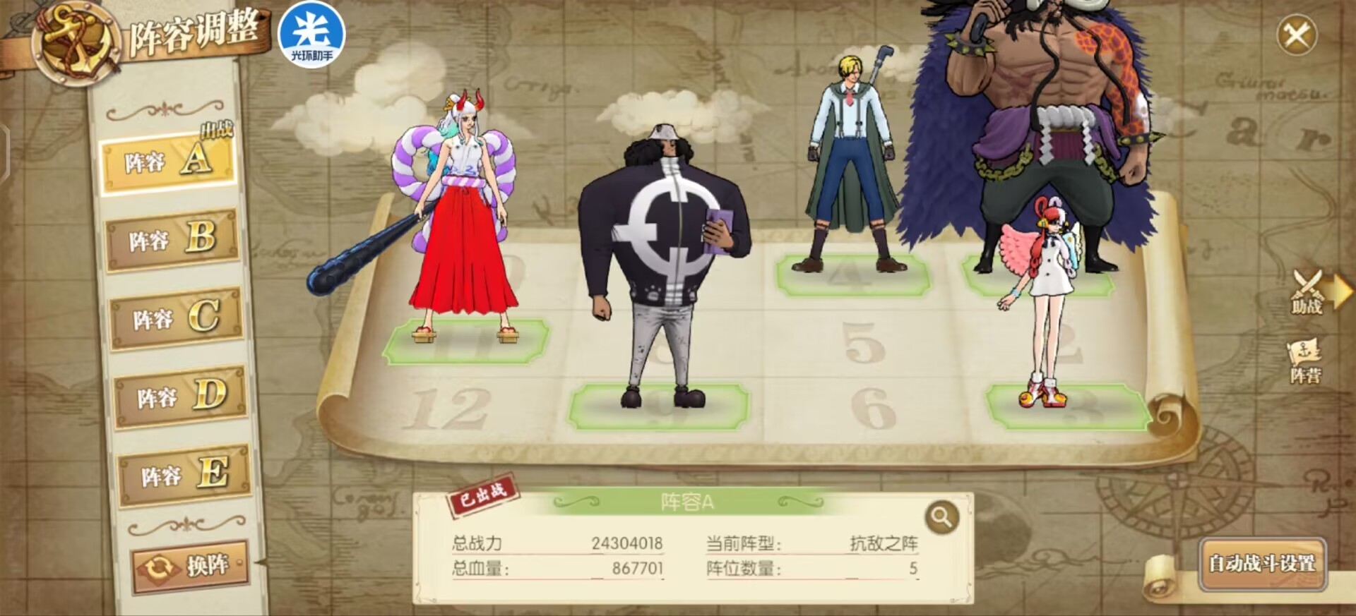 阵容打法:凯多保萨博,萨博替凯多吃伤害,大和慢速出手叠层数叠伤害,大熊直接奥义能磨青龙龙凯的衣服就磨。阵容还是怕大和,因为大和锤凯多和大熊那是随随便便的,所以尽可能躲一躲避一避。