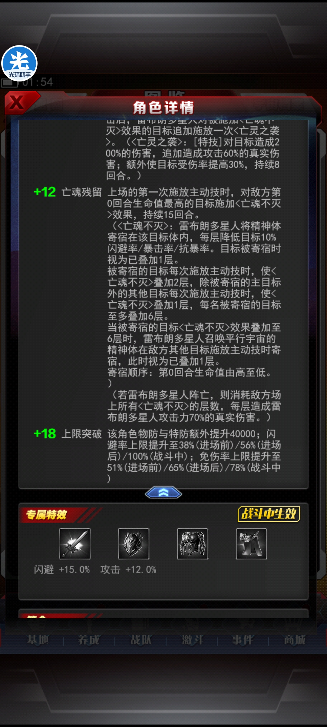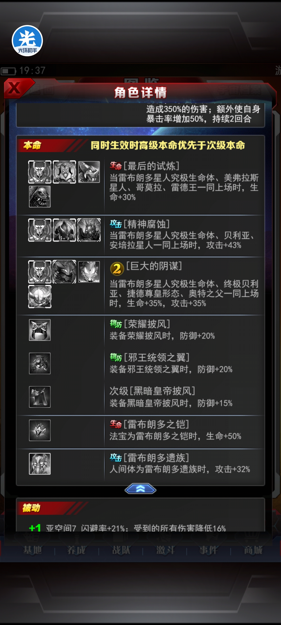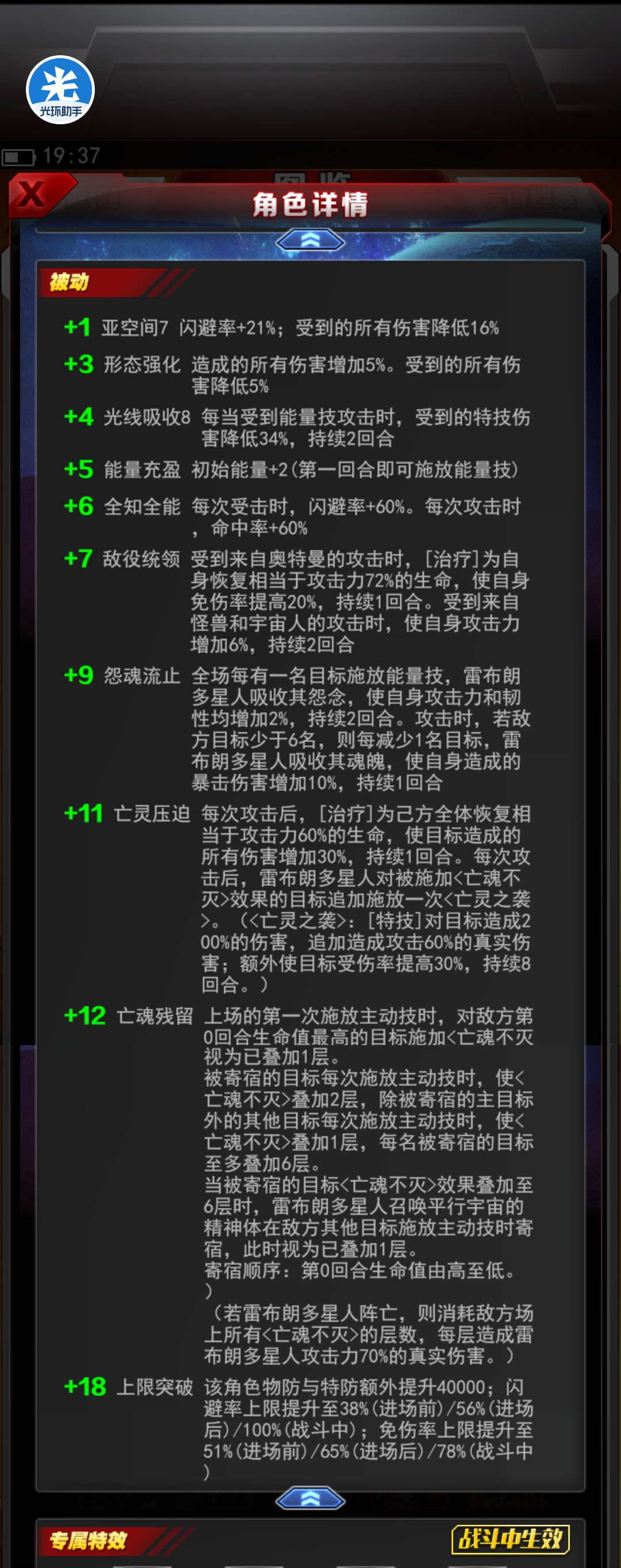 +7两层被动,受到奥阵攻击,有自身冶疗续航效果,并且增加免伤,受到邪阵攻击,加攻6%,最高六层72%的攻击幅度,当然实战增益不了这么多,机械角色不会触发该被动。