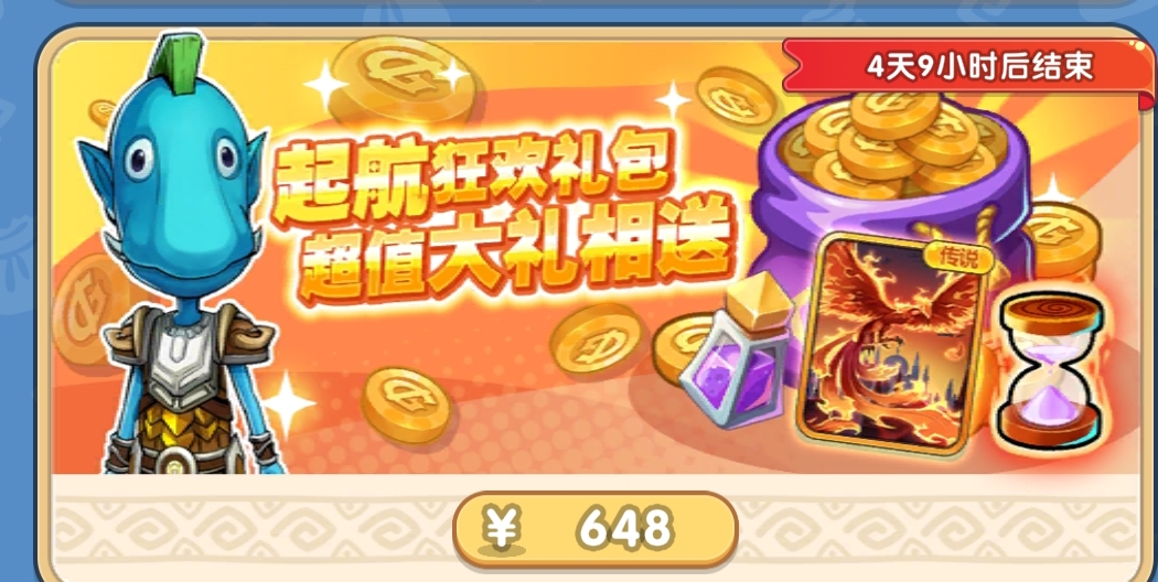 三:限时礼包—萌新补给袋(648元)推荐指数4⭐。适合中氪玩家2500档左右的玩家购买。