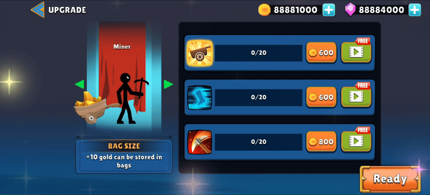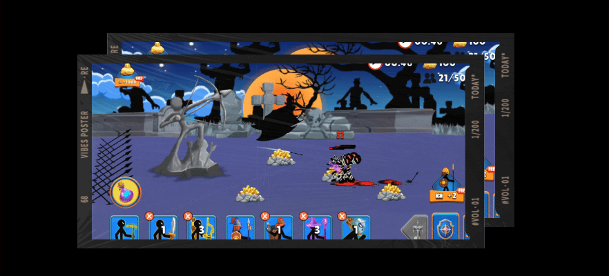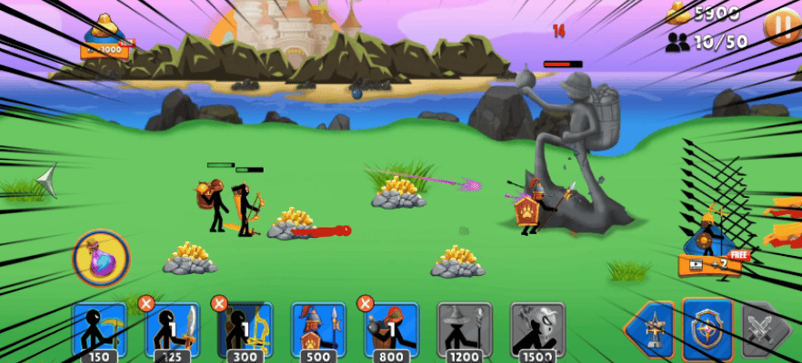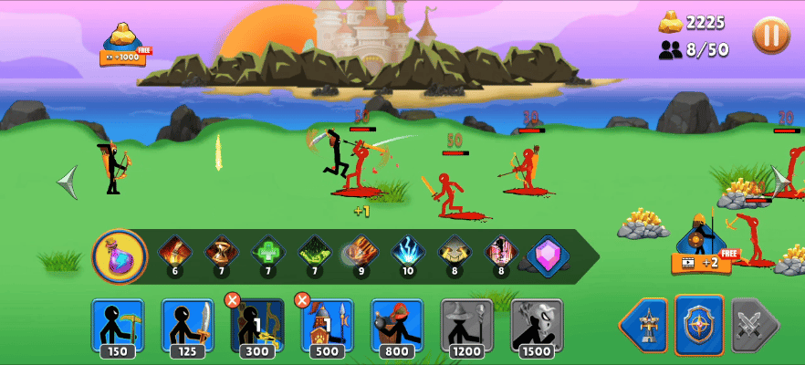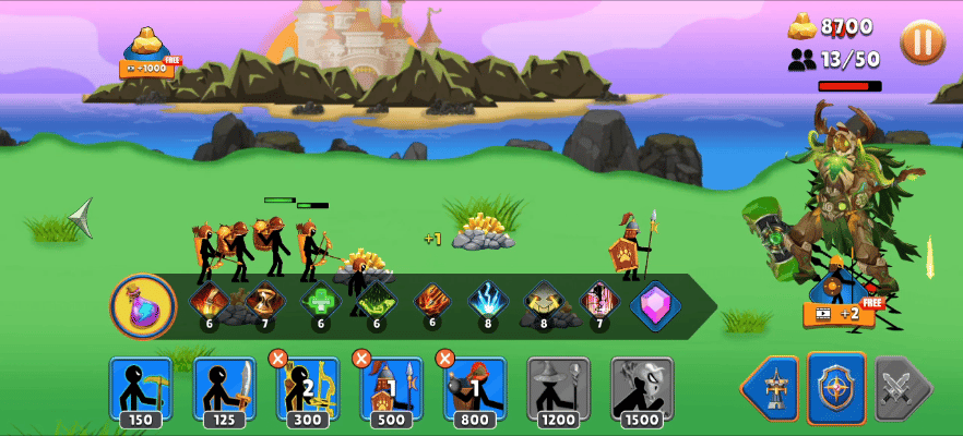 ✨收集各种不同性能的火柴人,组建战斗部队,开采黄金或是发起战争💥,争夺领土;