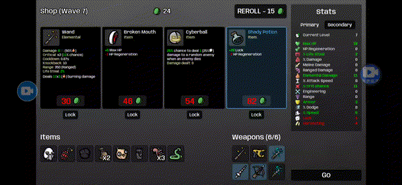 土豆有六只手,能拿六把枪,很合理吧🐮。敌人会在关卡内随机生成,当然,会越来越多,武器得越来越强才行✨,两把同样等级,同样的武器能合成一把更高等级的武器👍,合成玩法就在其中,当然,敌人也会越来越强大 ,甚至是越来越多,射击走位玩法就在这里✨。