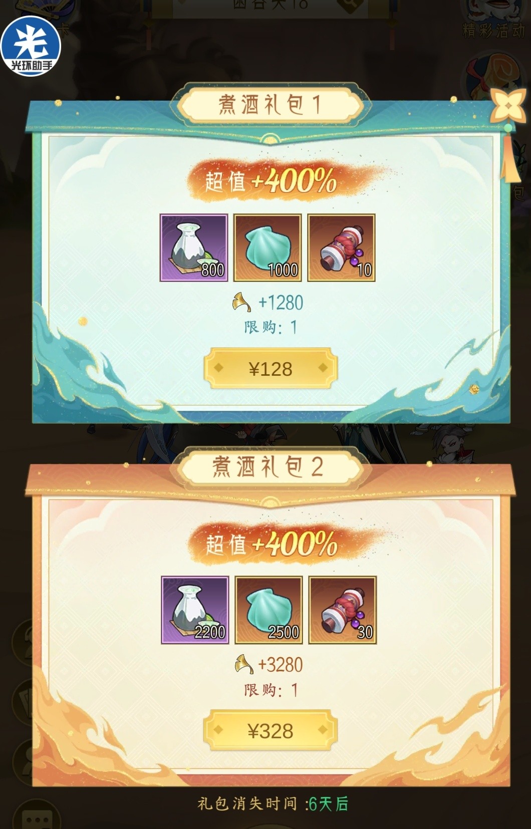 煮酒礼包性价比算是比较高的了,128加上活动能换差不多20连左右的资源,328的同样如此,是氪金抽香香的首选,性价比还是比较不错的选择,想氪金的可以氪一手来换活动资源~