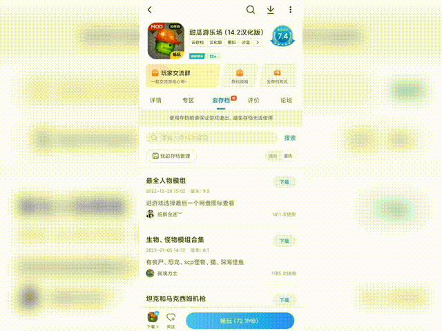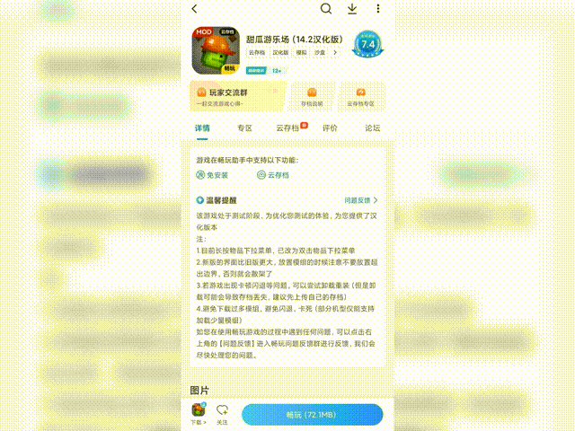 ①光环搜索“甜瓜游乐场”,认准“畅玩”“云存档”“汉化版”标签(或点这里空降↓↓↓)