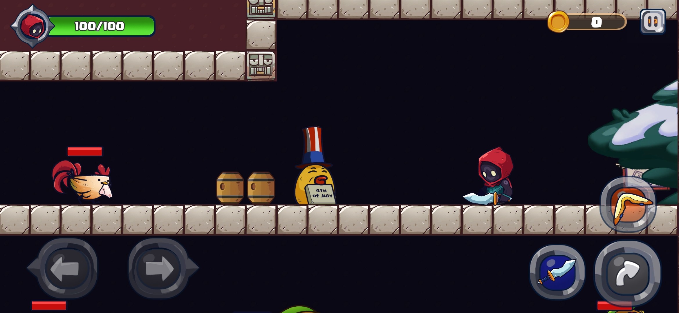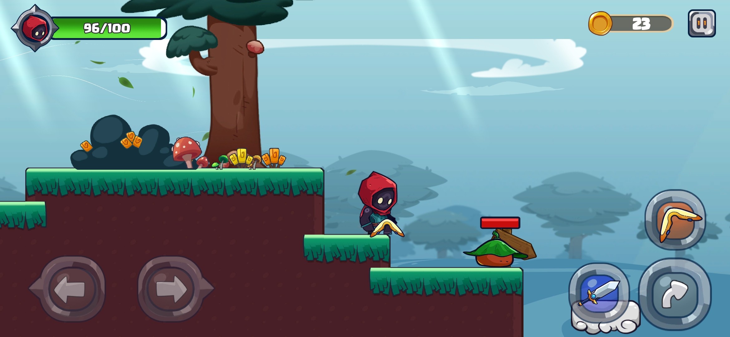 游戏操作设置比较简单,玩家只需控制角色左右移动、跳跃和攻击即可,比较有特色的是主角开场就兼具近程和远程攻击能力,不会逼玩家二选一进行战斗,我们既可以用刀剑重创对手,也可以用回旋镖打一个措手不及,战斗系统是不是很友好呢?本作以关卡的形式推进剧情,敌人也会随着游戏进程深入而发生改变。一开始的敌人都是萌萌哒的小动物,打不还手骂不还口;当玩家熟悉这个轻松的战斗节奏,就会发现关卡多出了许多“骨骼惊奇”的动物敌人,比如疯狂乱窜的小鸡就能轻松让角色血条消失,实在是防不胜防!
