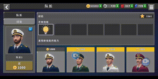 有船就得有船长👌,当然,真正的船长肯定是玩家啦👍,不过总得需要一个门面担当✨,所以,各种船长包括船长的技能,这是可以提高你的各种属性的,✨包括你一趟所可以获得的金钱🤔。