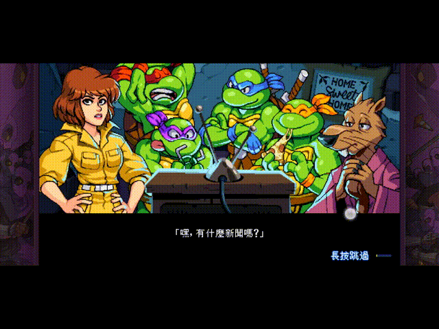 本作延续了传统街机风格继续讲述忍者龟的故事,只不过相较于旧时代的街机而言,这一代《施莱德的复仇》有着更完善的动作系统以及更帅气的招式,最重要的是支持四龟联机哦!谁能拒绝四龟同屏的战斗呢?