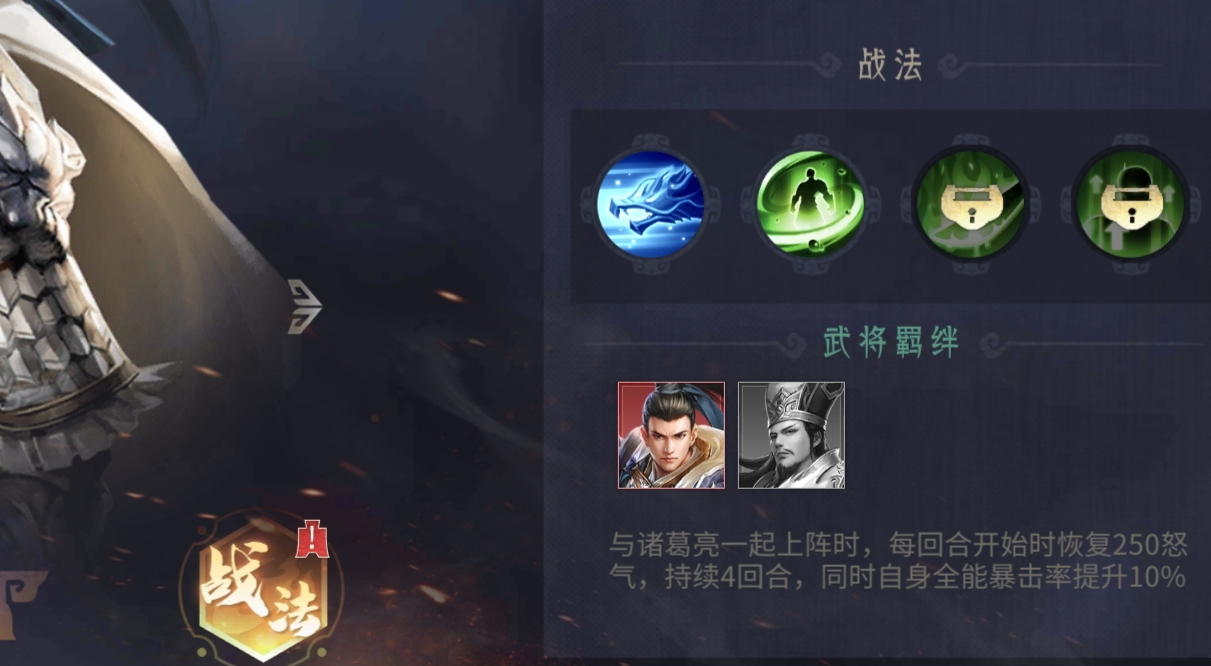 【战法】是一种装备性质的配件。是激活技能的关键,同时也是技能伤害和技能质变的关键所在。