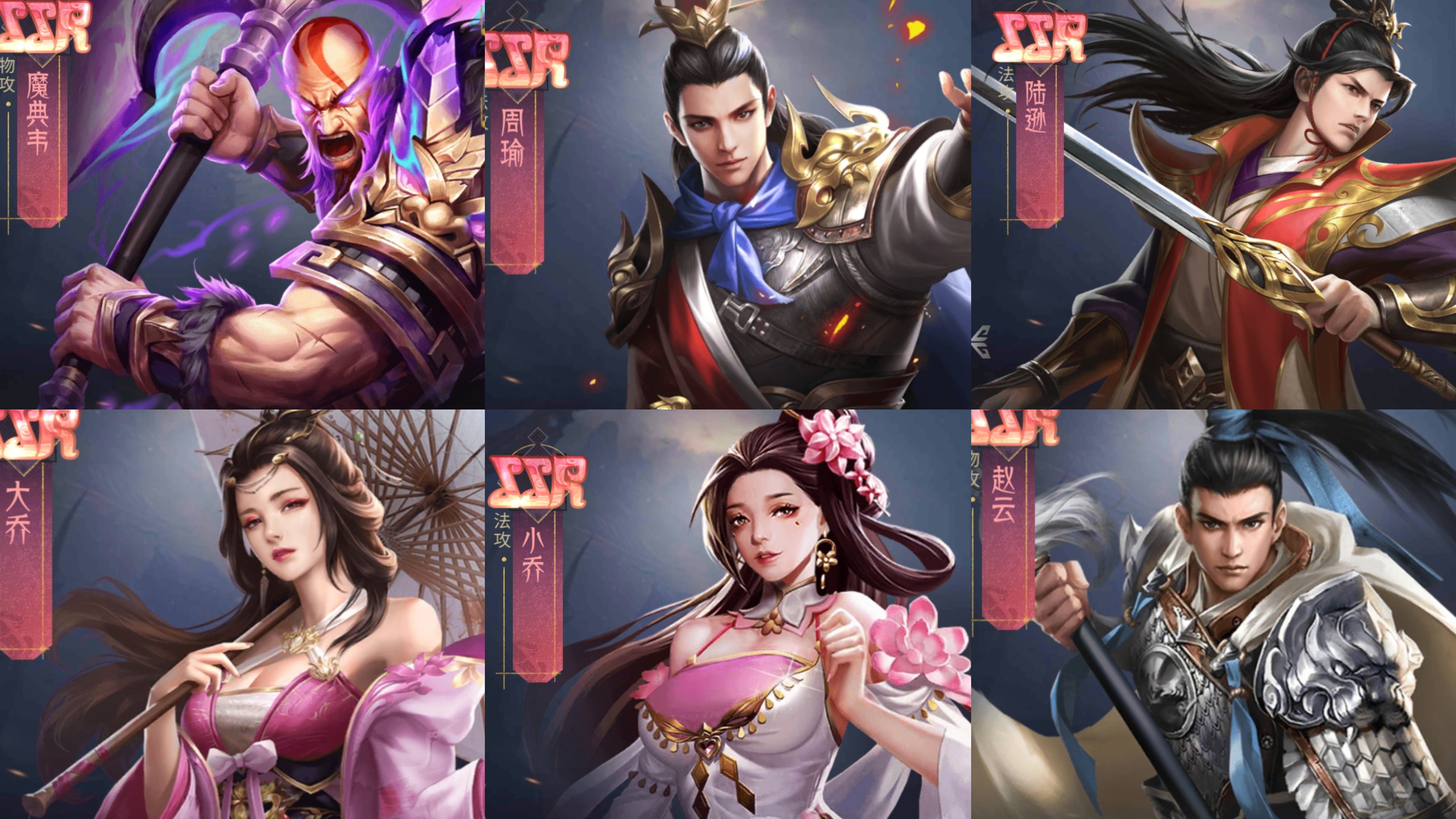 ⭐吴国开局阵容搭配:周瑜(核心)+小乔+赵云(羁绊配置)+大乔+陆逊(或者香香)+魔典韦(羁绊配置)。( ps:魔典韦首充第三档100元就可以获得。)