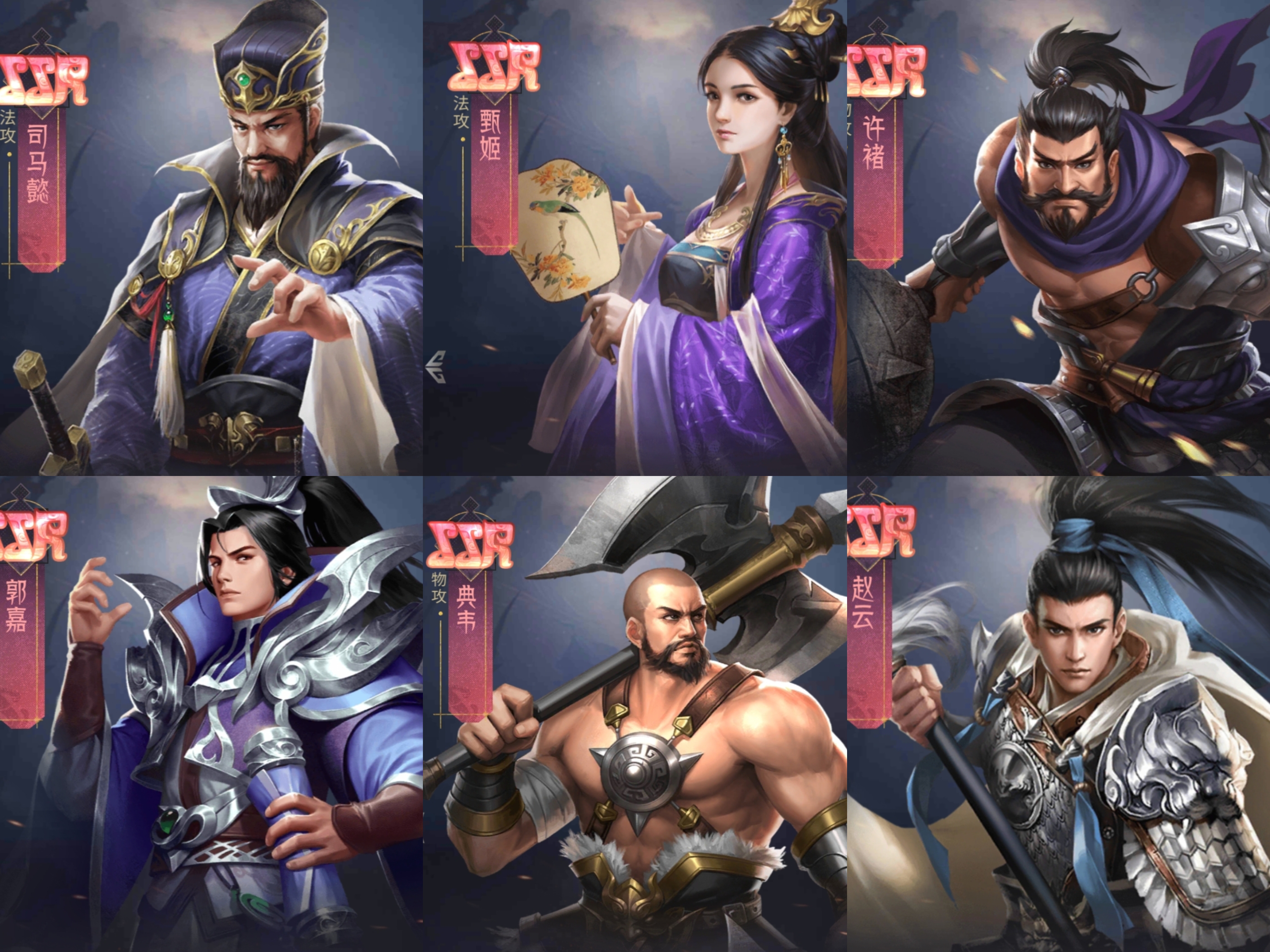 ⭐开局阵容搭配推荐:司马懿(核心)+甄姬+典韦+郭嘉+赵云(过渡)+许诸(过渡)