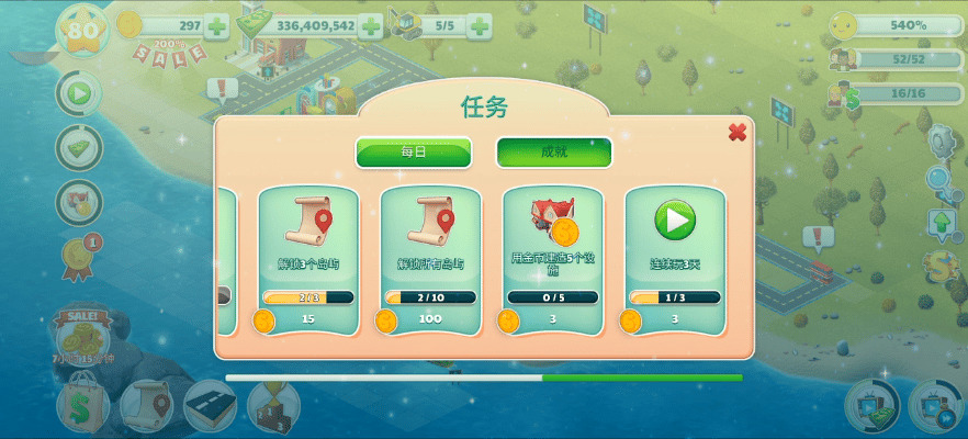 ✍完成每日任务,升级岛屿,获得更多丰富的建筑🕍。
