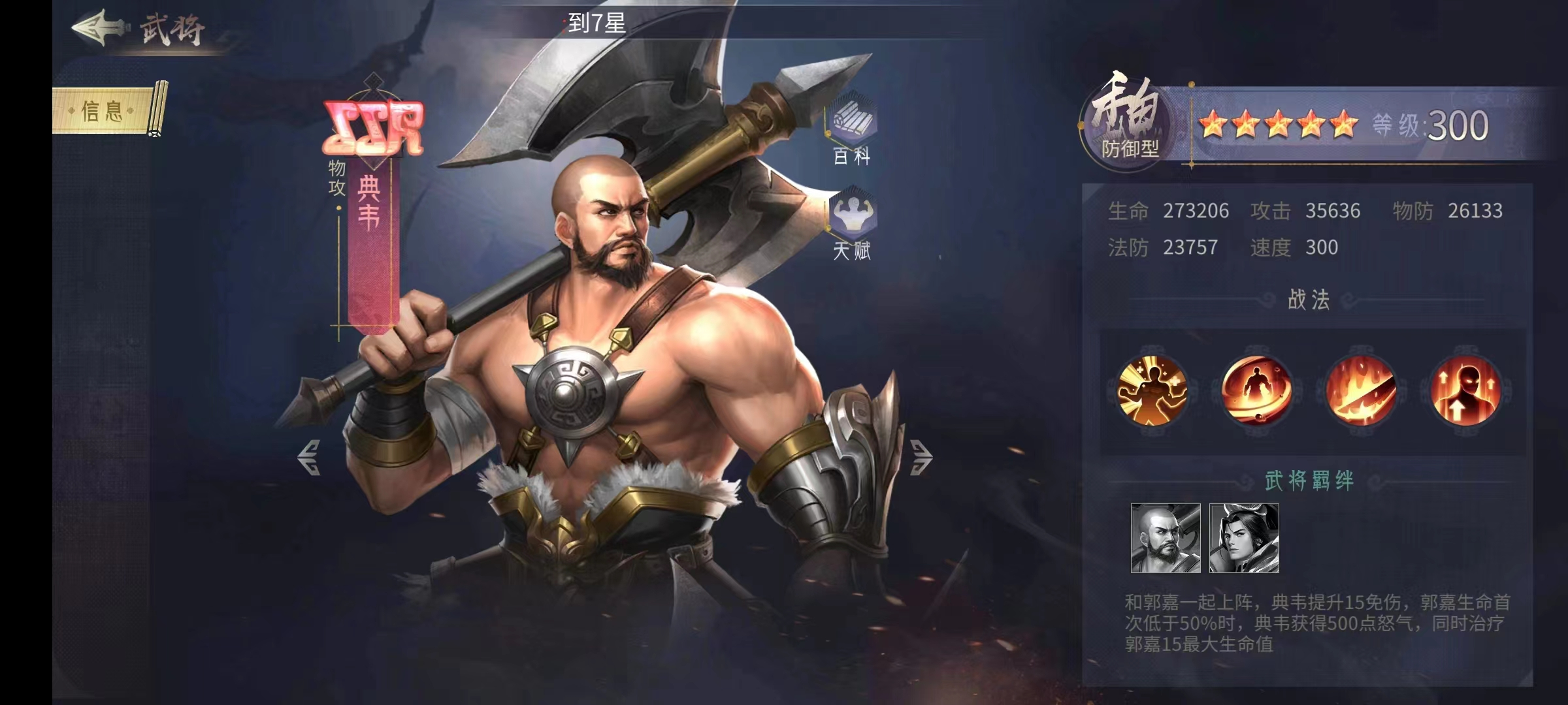虽然吴国的人气最低,但确实最适合氪金大佬称霸服务器的阵容,周瑜的单体爆发极高,配合上大佬的高战力,可以直接点杀对面一个人,是推荐优先培养的主C,典韦是队伍的主力前排,所以除了周瑜之外第二个要优先培养的就是他。