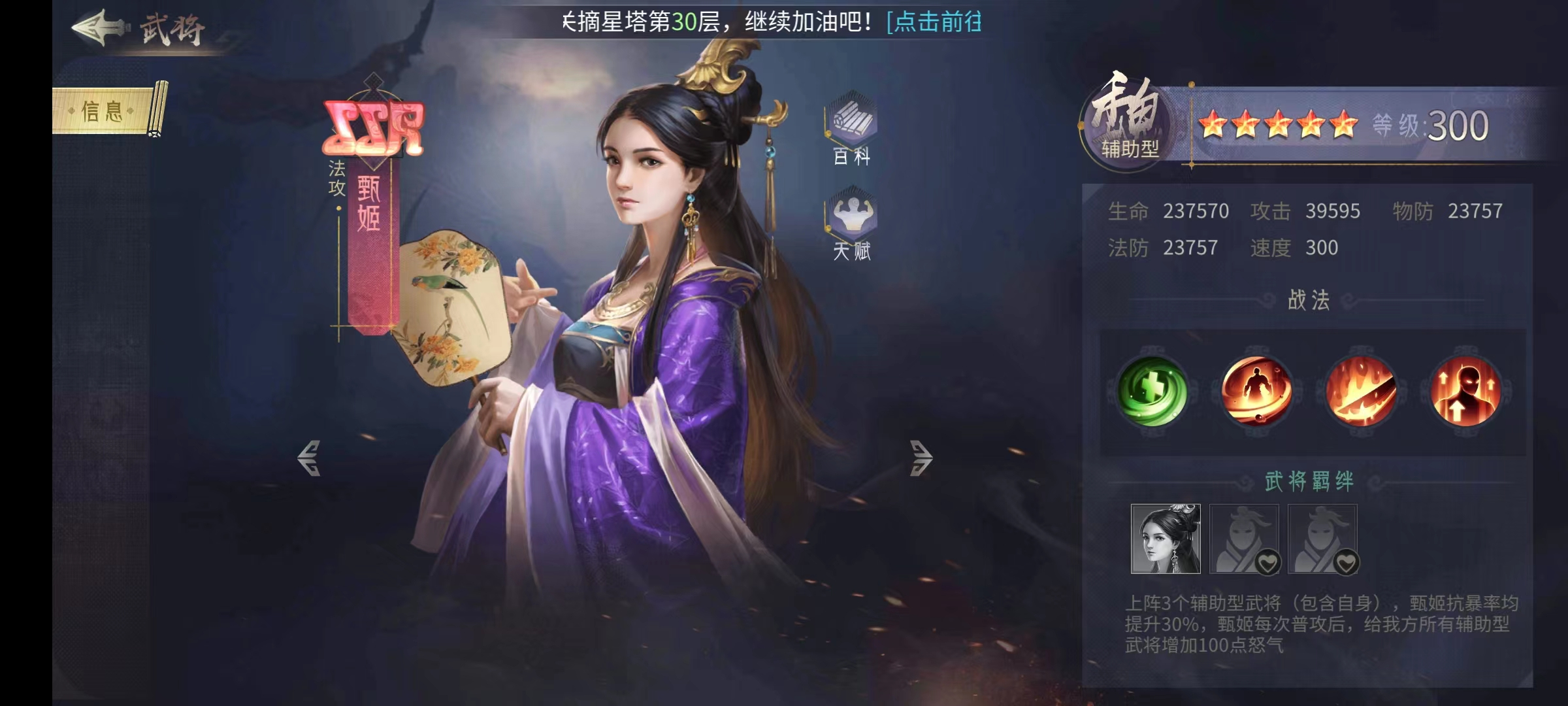 小乔的作用主要是和周瑜搭出羁绊,防止他被秒,最好将小乔放在周瑜的前面,这样她死了就能给周瑜触发回血,甄姬的作用主要是给郭嘉其他角色回怒,并且还提升所有辅助类英雄的抗性。这样的搭配非常稳定,几乎可以保证在同战力下胜出。