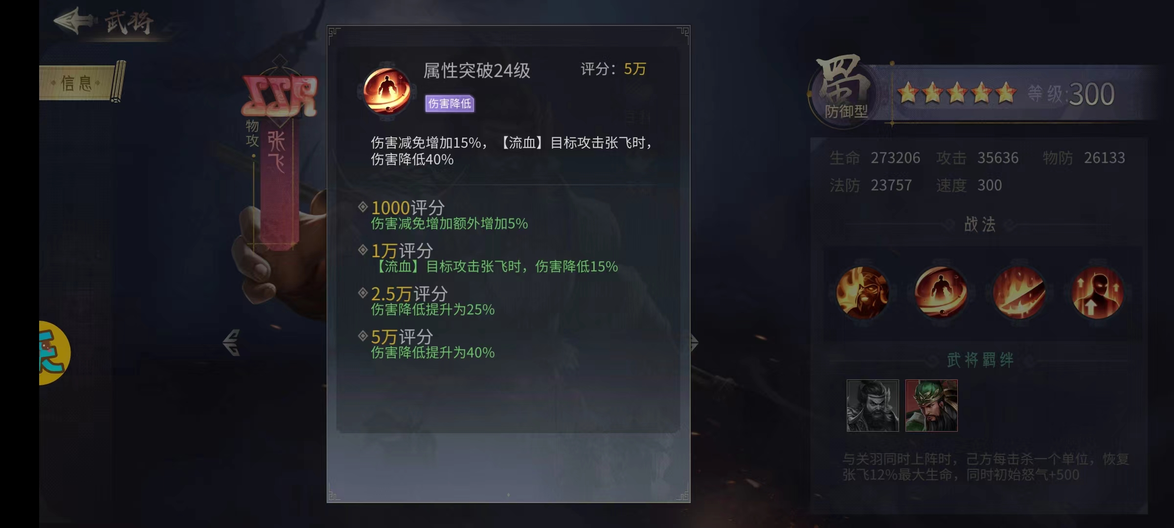 另外一点就是资源利用率方面,前期玩家在装备升级和武将培养上,可以无脑点点点,但在中期资源需要科学的进行倾斜,特别是前排武将和辅助武将的倾斜重心,拿大家比较常见的张飞举例,作为一个前排英雄,他自身提供的免伤已经足够了,所以我们没必要为了套装升级的加成,去为他提升全身的装备,而是单独增加的他的血量即可,依靠血量百分比的回血,加上百分比的免伤,这个前排的任务就完成了。不需要再给他额外升级抗性。