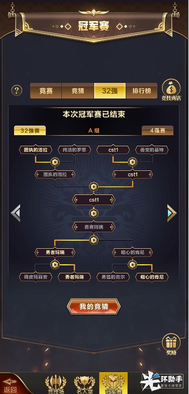 总积分数前32名的玩家将参加32强赛,分4组进行,最终决出冠亚季军。