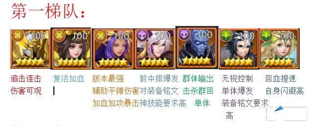 梯队已排好,可以按照我们这个梯队去玩哦;若是有其他更好想法也可按照自己实际情况来安排梯队