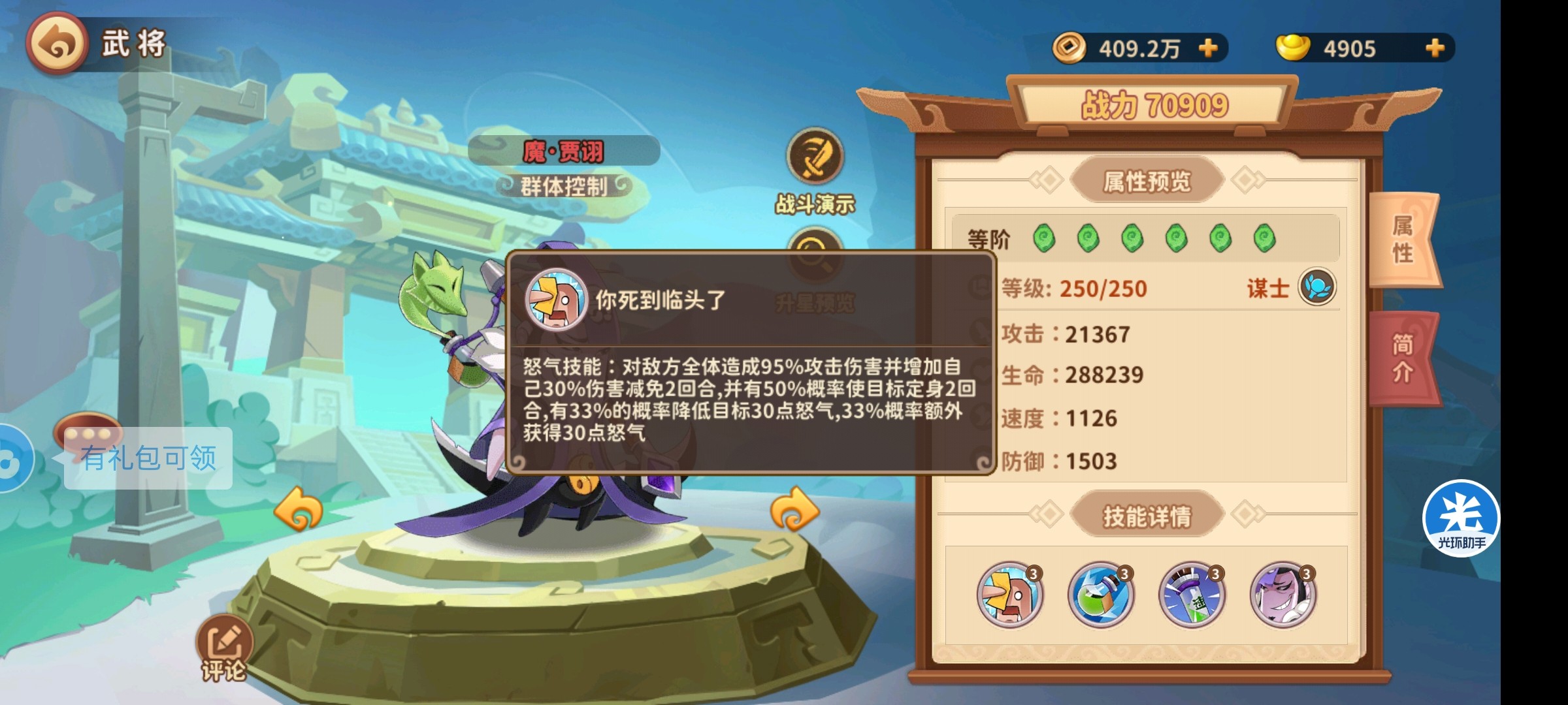 魔贾诩除了控制以外也能降低敌方的怒气,相当于软控制,也是不错的技能。