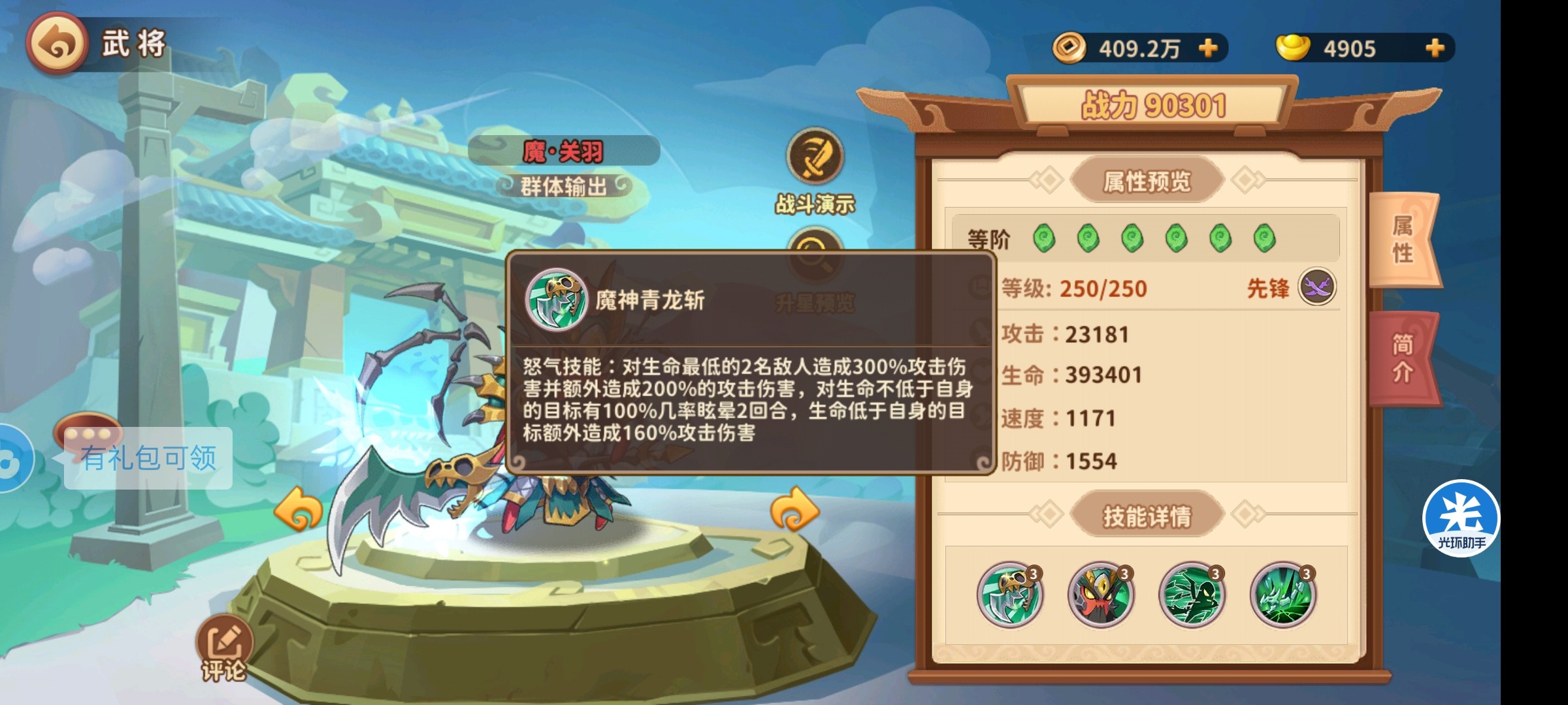 在其他武将的选取中我们选择了魔贾诩增强队伍的控制,魔关羽进行收割。