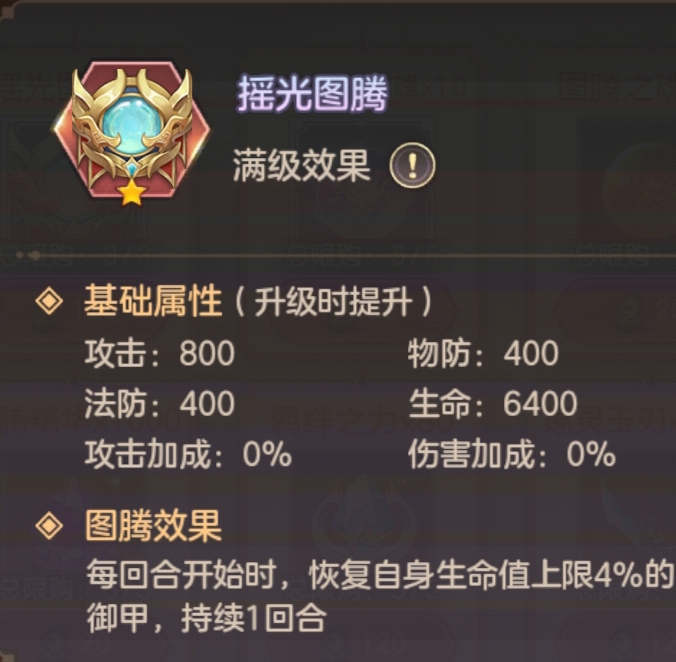 摇光图腾技能是偏防御类保命类型的,恢复生命和抵挡伤害,同时属性又是攻击加成和伤害加成。从这两点入手分析: