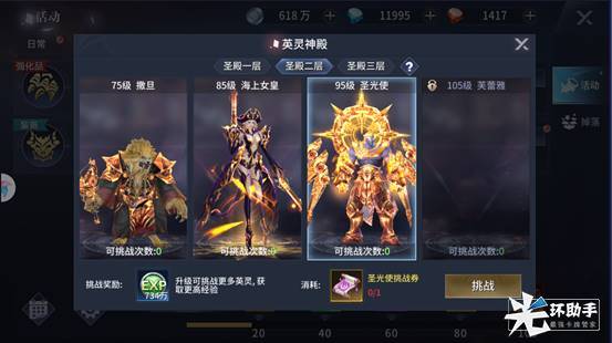 25级开放,消耗挑战劵挑战各路英灵,获取超量经验,简单易过