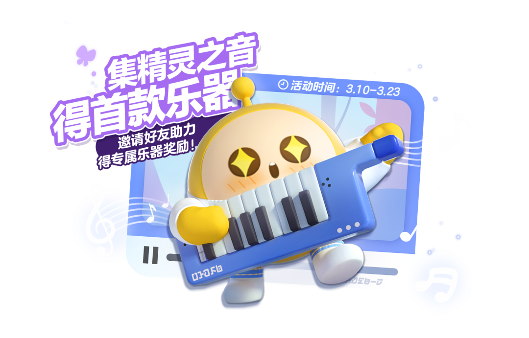 活动内容:活动期间邀请五位好友演奏精灵之音,即可获得首款弹奏乐器【初学者电子琴】!快来邀请好友为你助力吧!