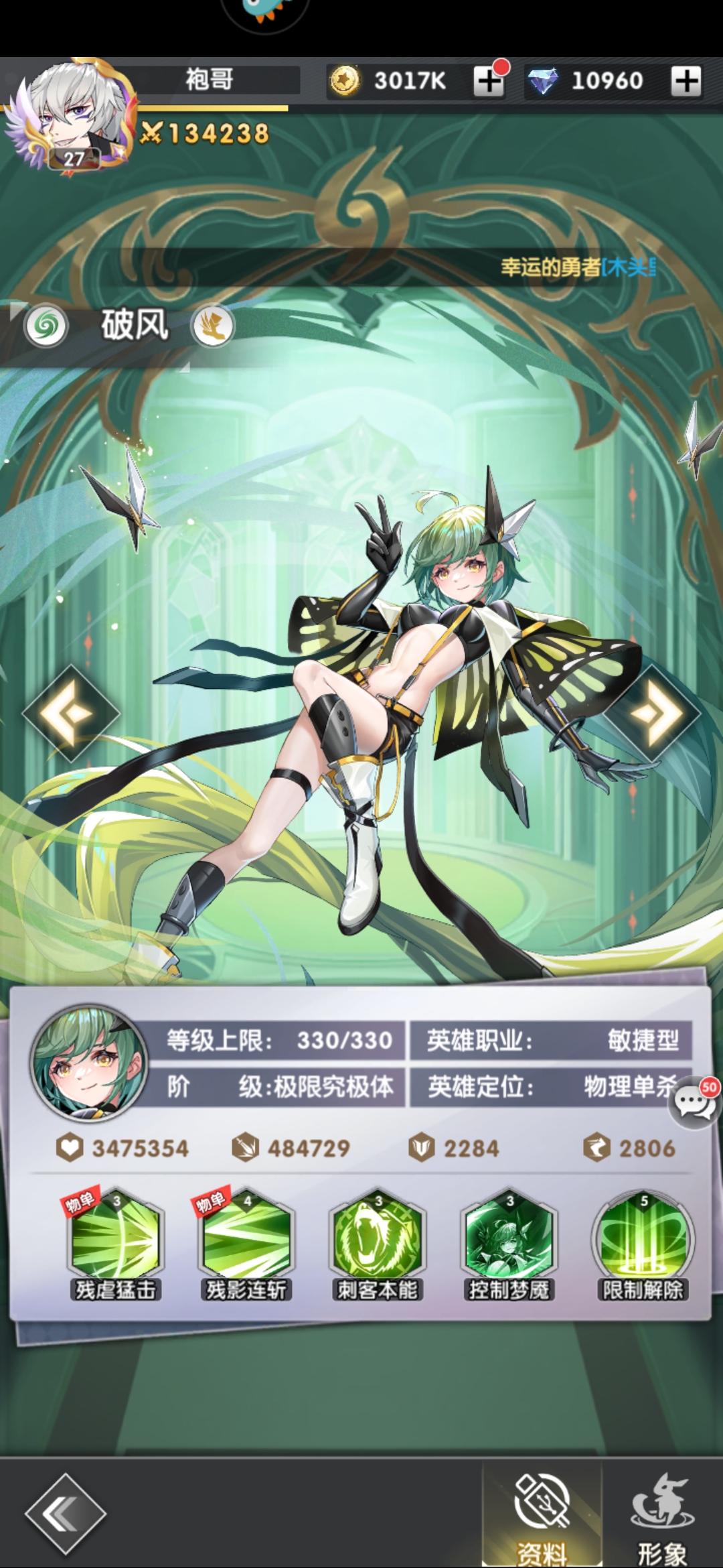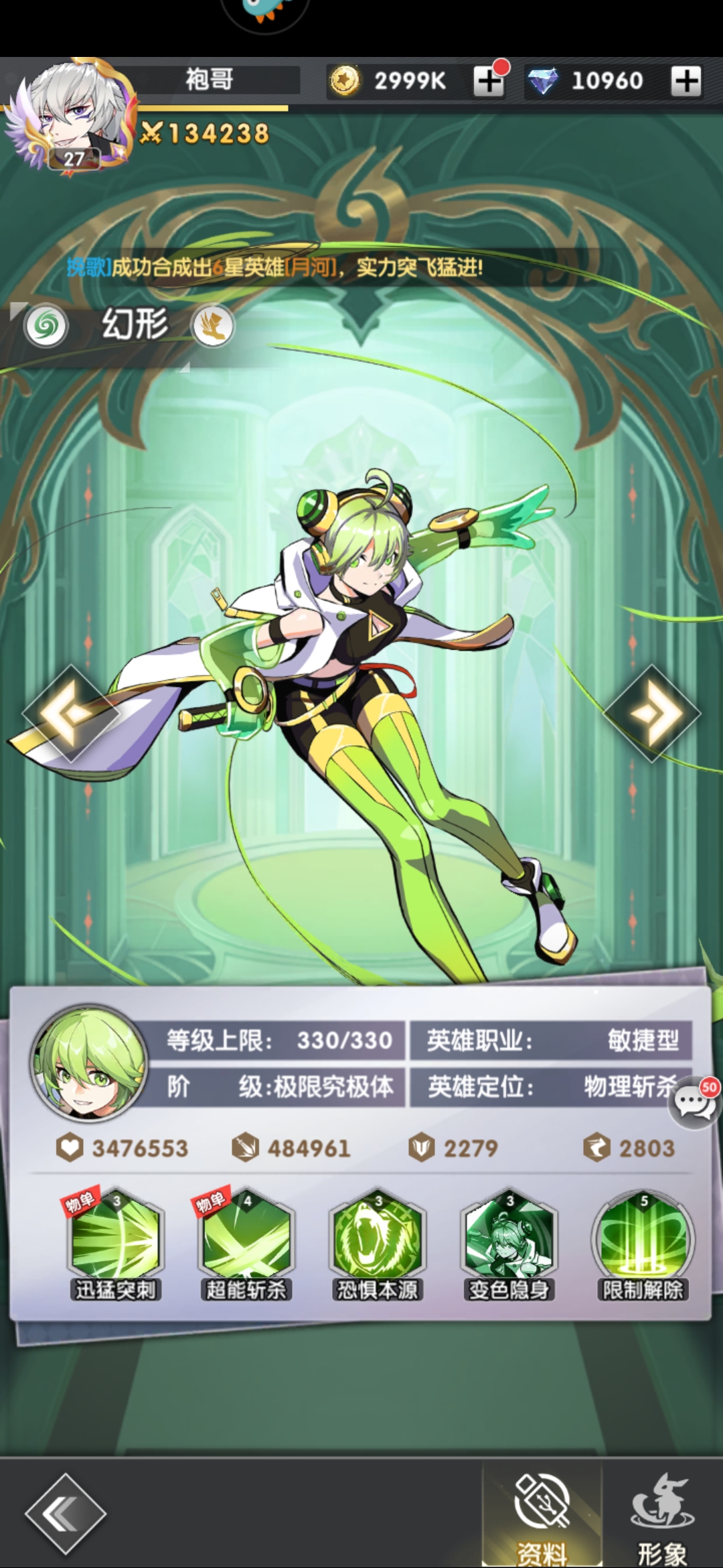 2、幻形 强度T1,不怕控,单体强力斩杀,可用到后期。