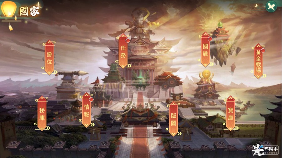 国家是游戏内的核心跨服玩法,以单个服务器为一国,每4个服务器为一组,分为金、木、水、火四国参与;