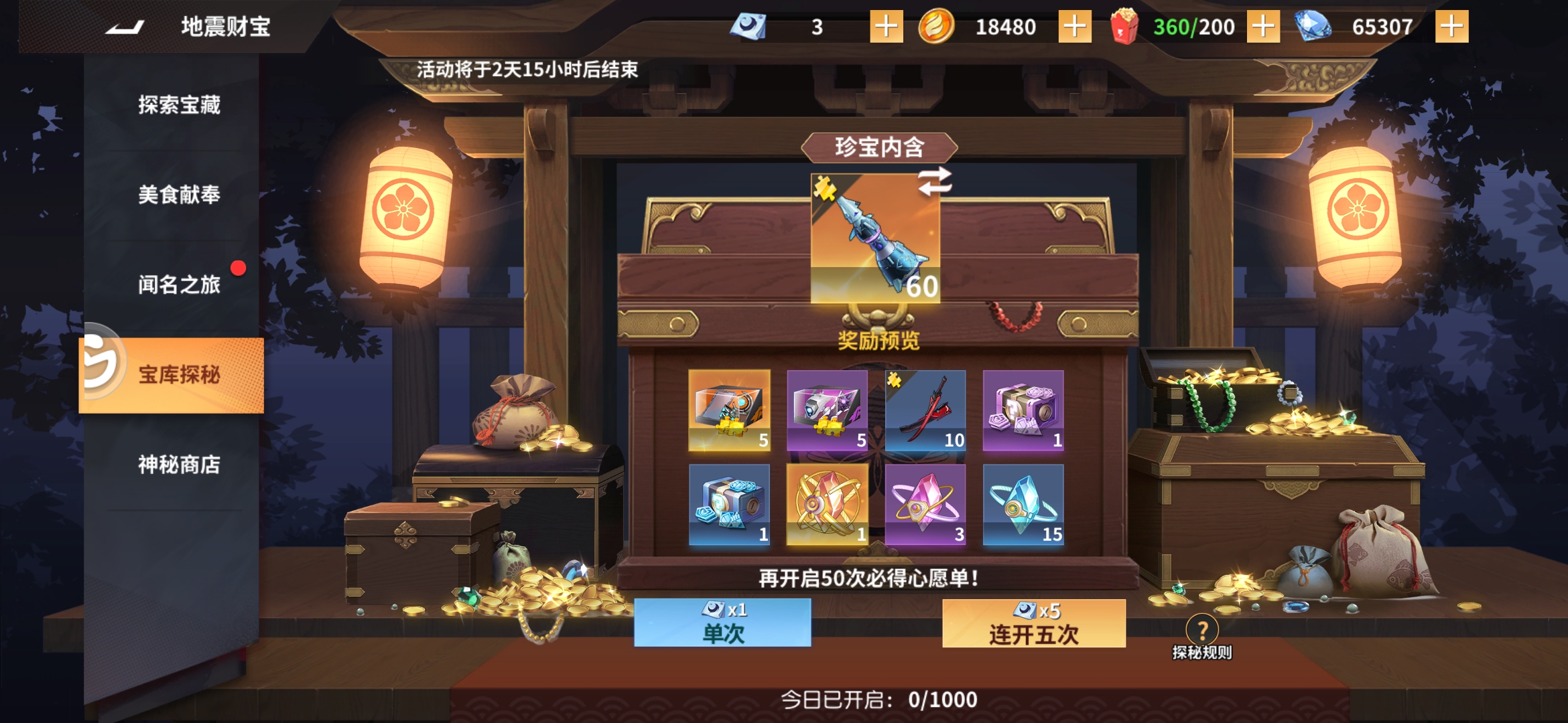 活动持续3天,保底次数为50次,地震券500钻/个,商店可买50个,地震券可囤!