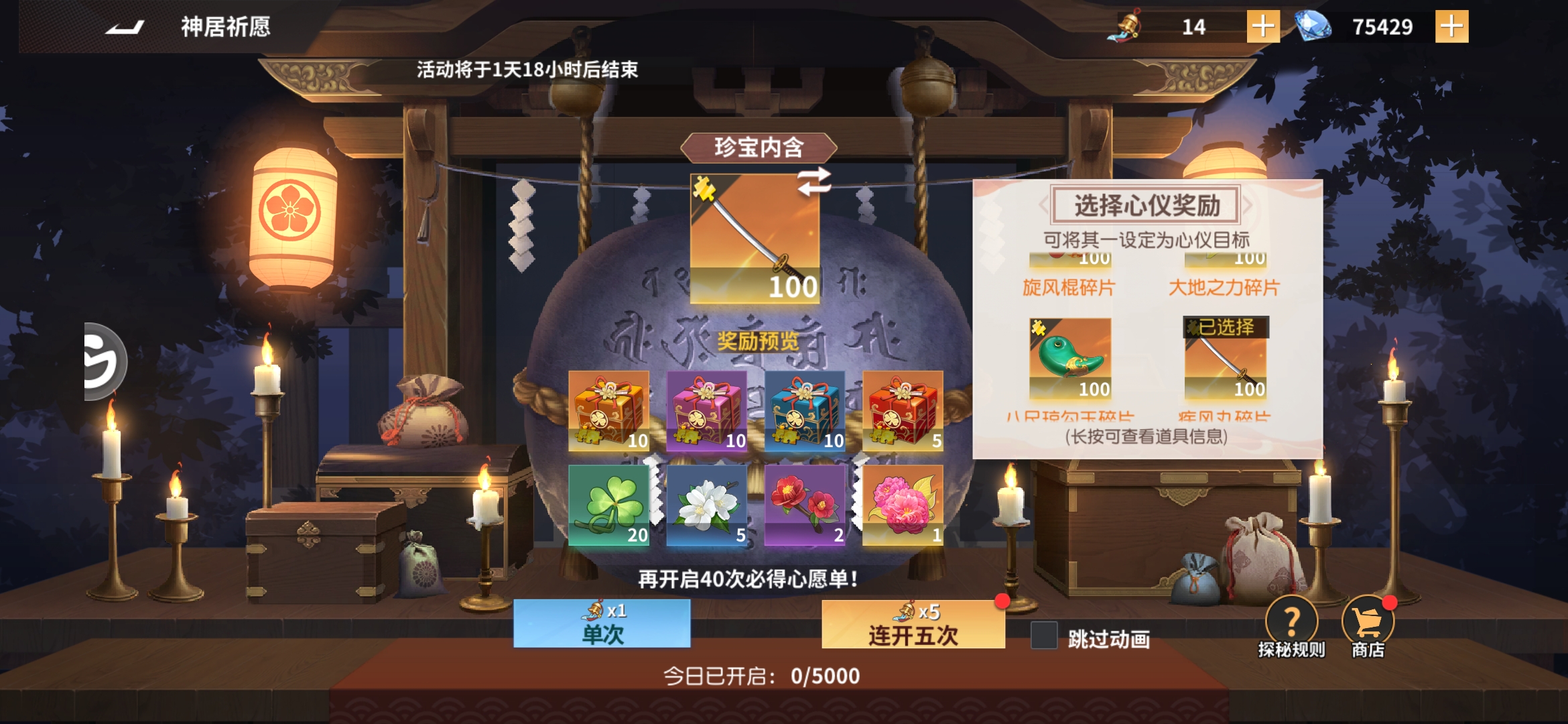 活动持续5天,保底次数为40次,专属券500钻/个,商店可买50个,专属券可囤但没必要。(碎片通用)