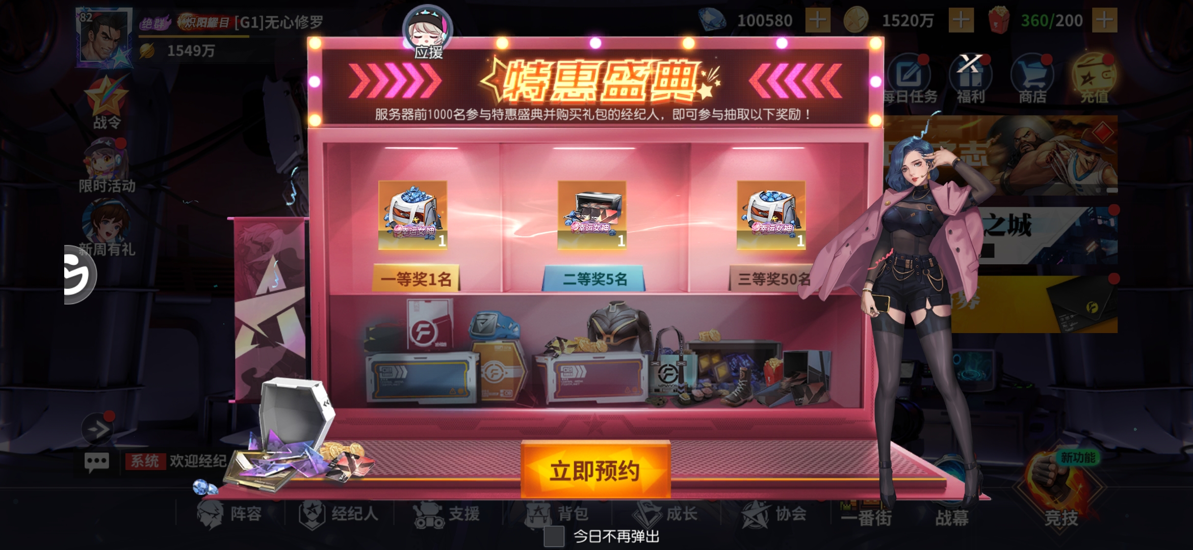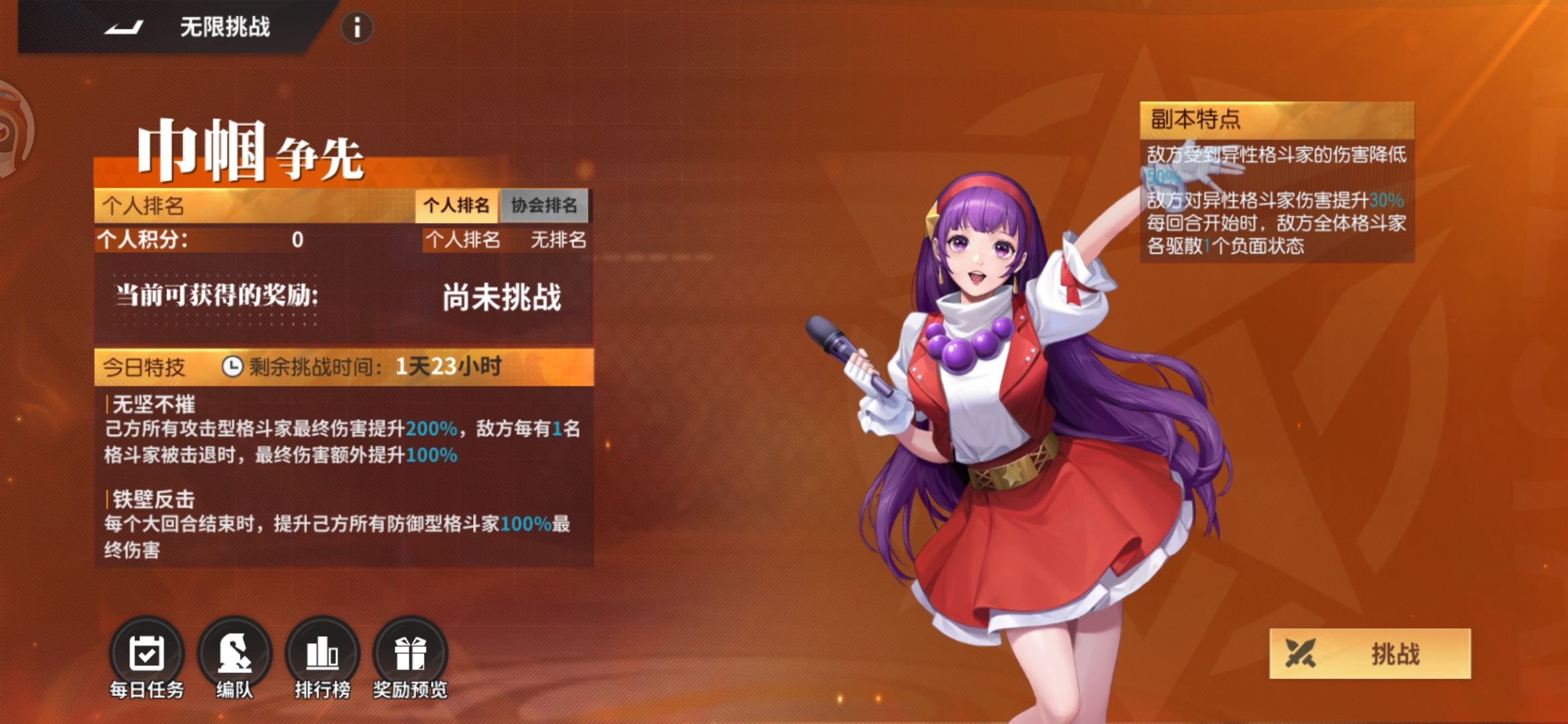 常世之门的主要奖励为大量斗魂和钻石,活动持续5天,为数不多吃抗克加成的打输出活动。(或许就因为吃抗克加成,所以被认为不平衡,才被极限挑战逐渐取代)