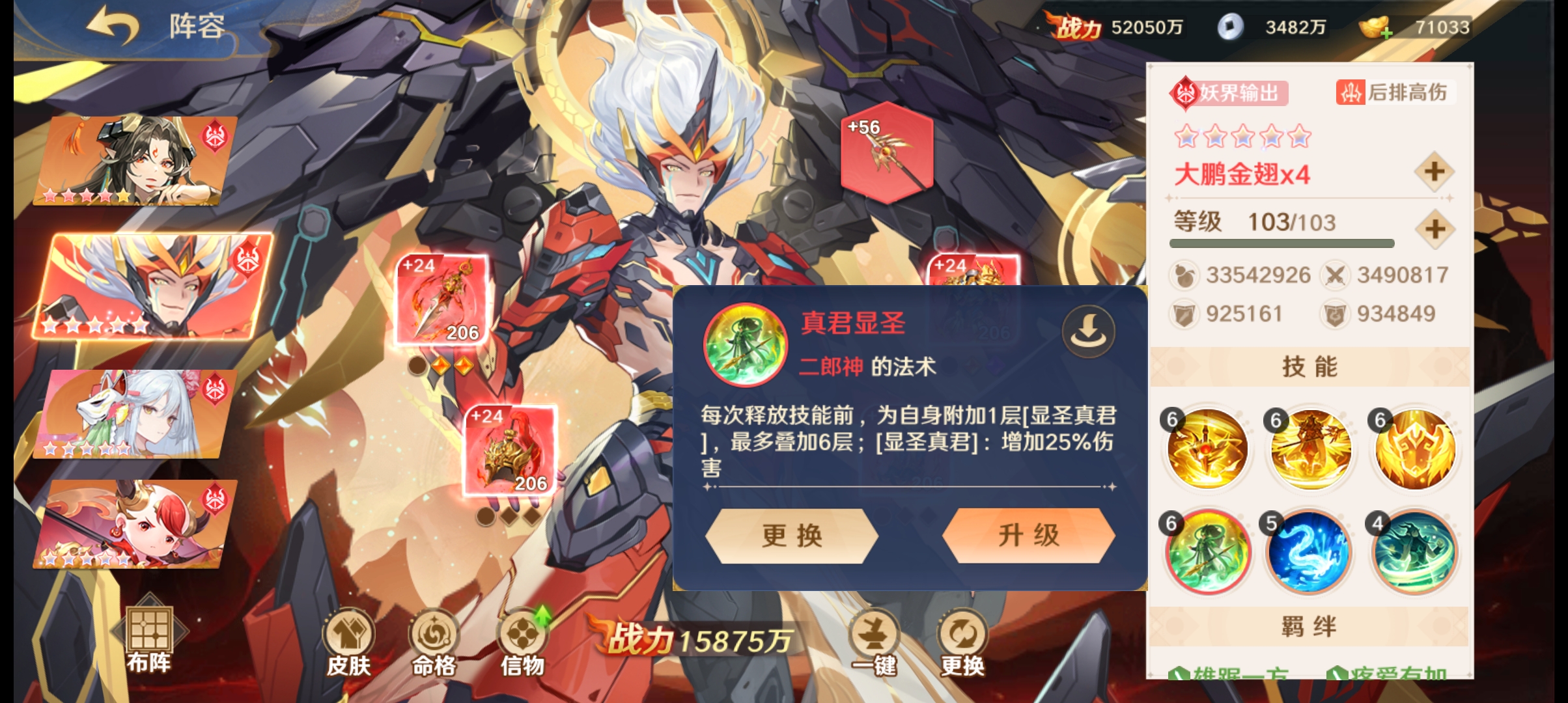 ㅤ今天我来跟大家说一下大鹏的具体搭配,法术的话,不用参考这个,正常情况下,他如果三个位置最佳的法术组合,应该是:二郎神丶小白龙丶孙悟空。信物一剪梅一样是放在一号位的不二之选。