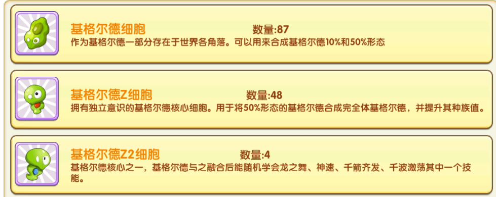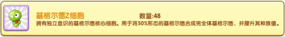 消耗50个基格尔德Z细胞可以培养成完全体也就是100%形态的基格尔德。