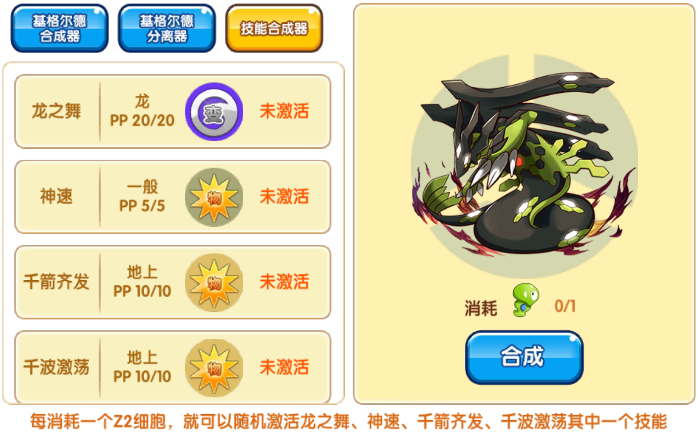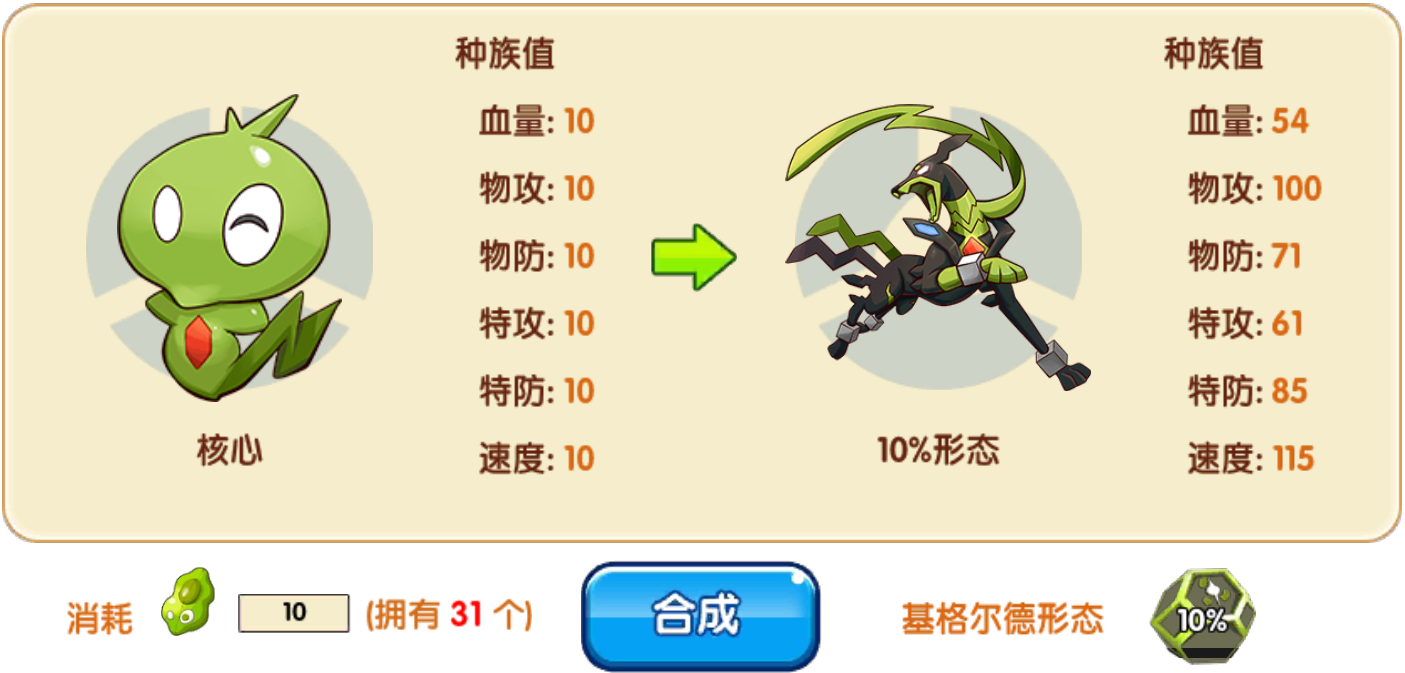 用途:用于将50%形态的基格尔德合成完全体基格尔德,并用于提升其种族值