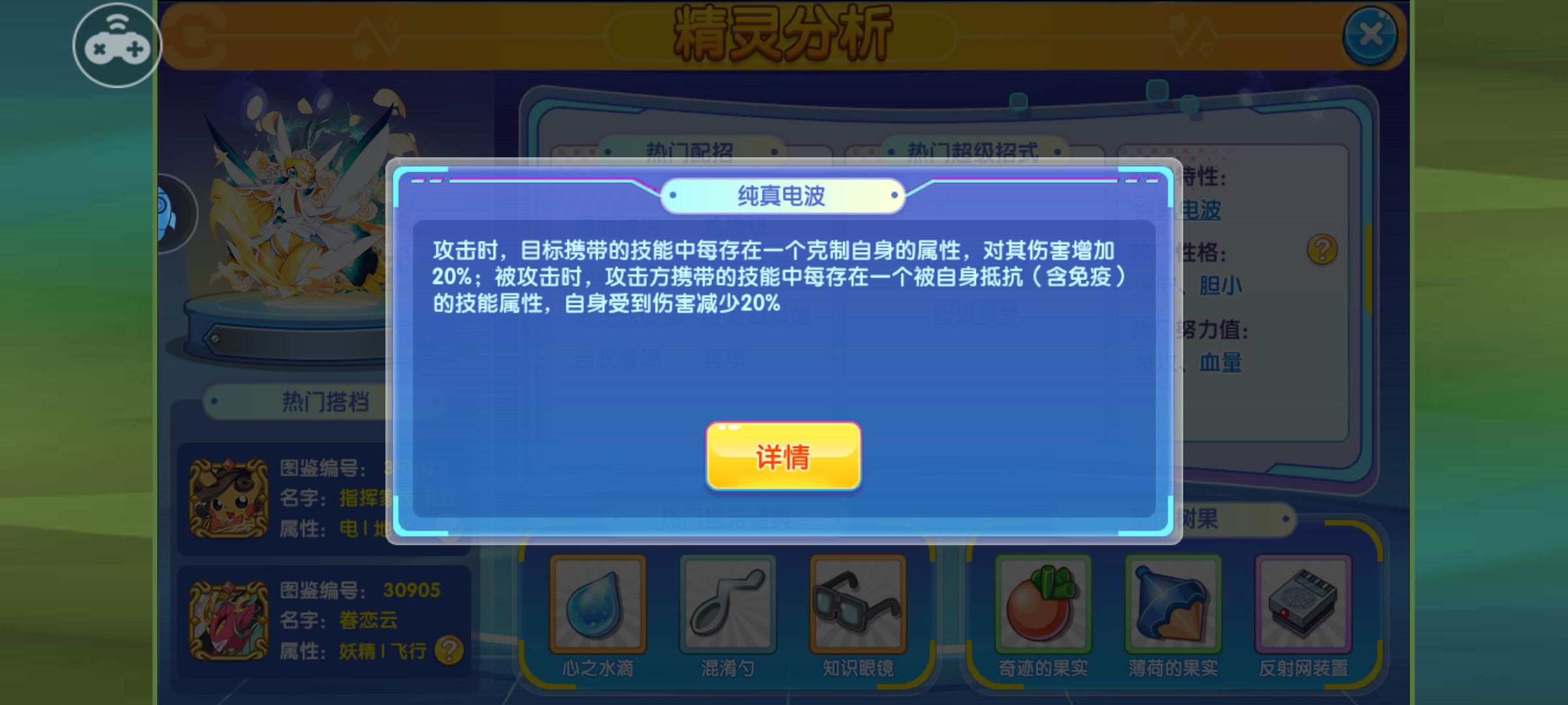 特性肯定是选择纯真电波。特性大意是:对方每带有一个虫,幽灵,冰,恶,龙,妖精属性的技能,我方的伤害就会增加20%,如果对方带了4个,那么就是80%了;