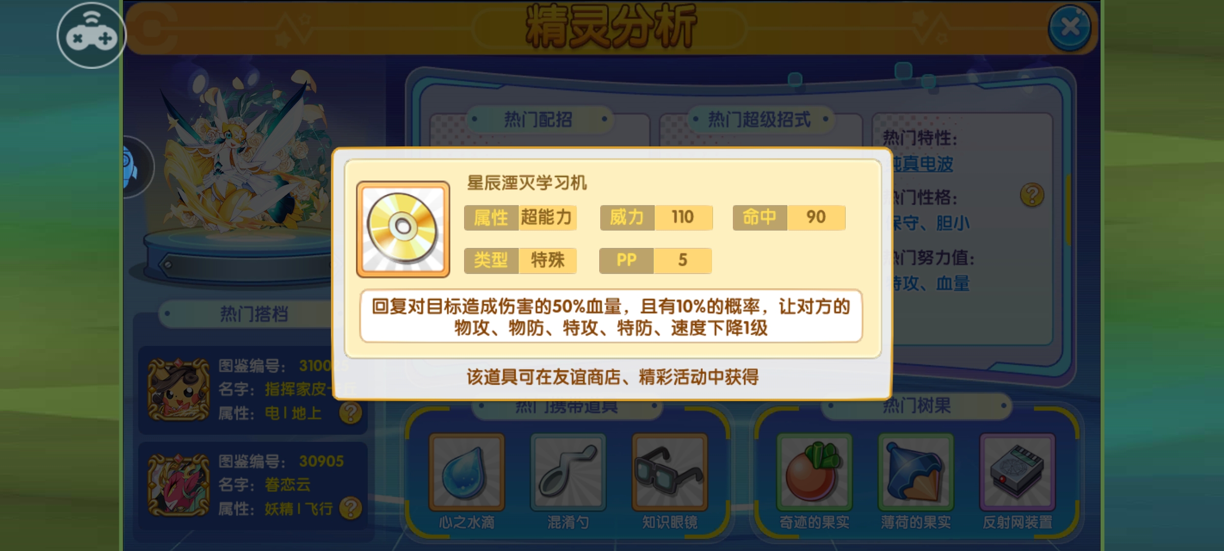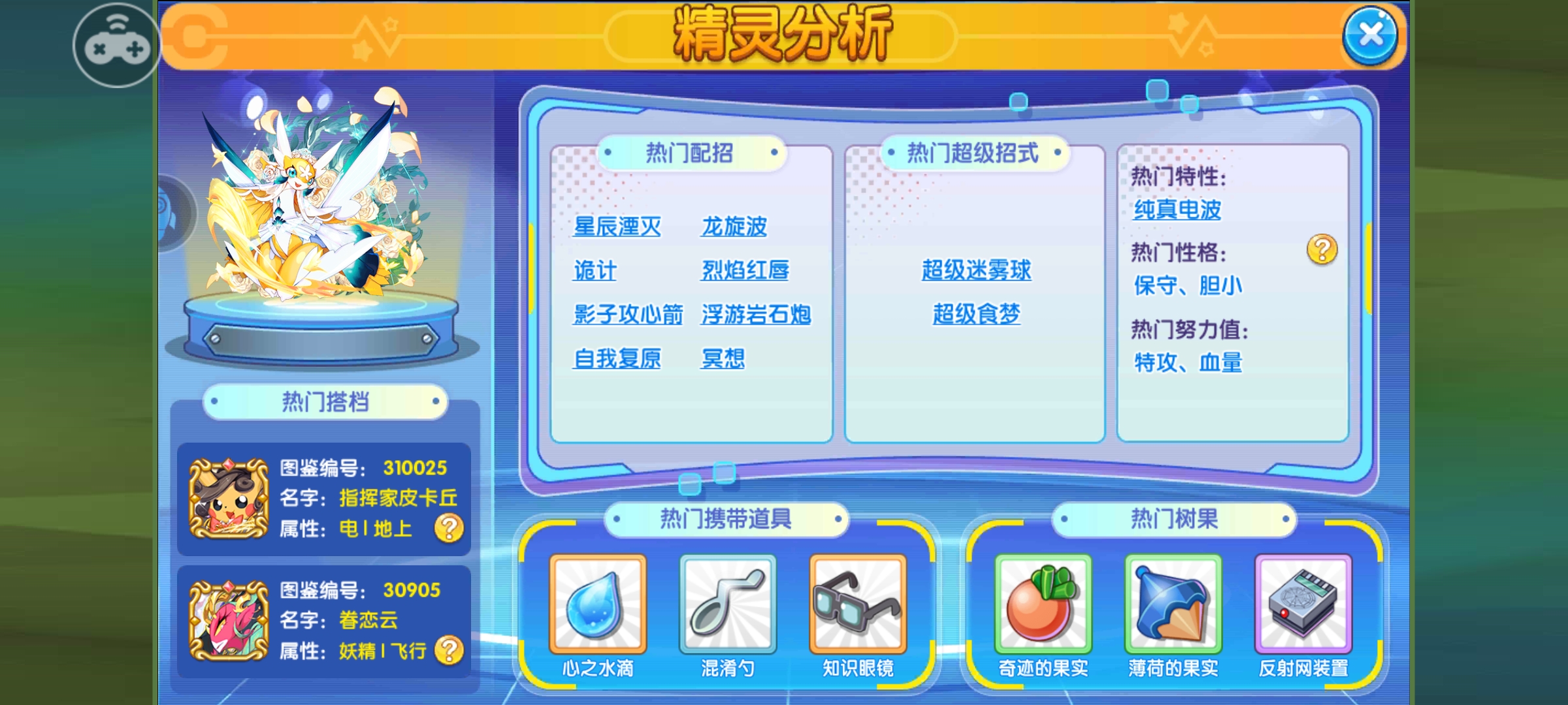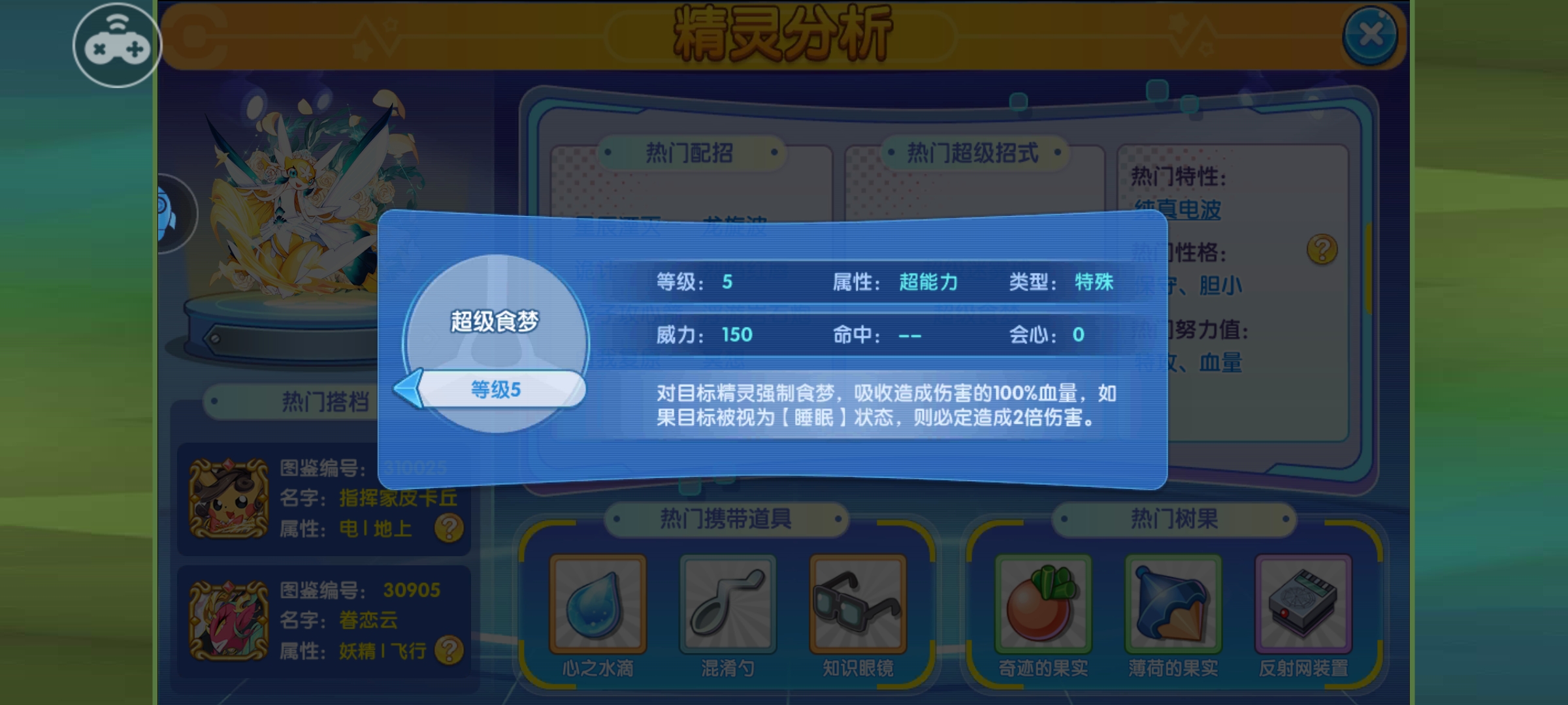 梦幻;配合拉提亚斯,携带物最好带海洋粘液,因为拉齐亚斯的专属怕落拳,而道具粘液则可以解决这个问题,再加上特性,可以增加星辰湮灭的威力,接抛媚眼可以找机会强化、输出