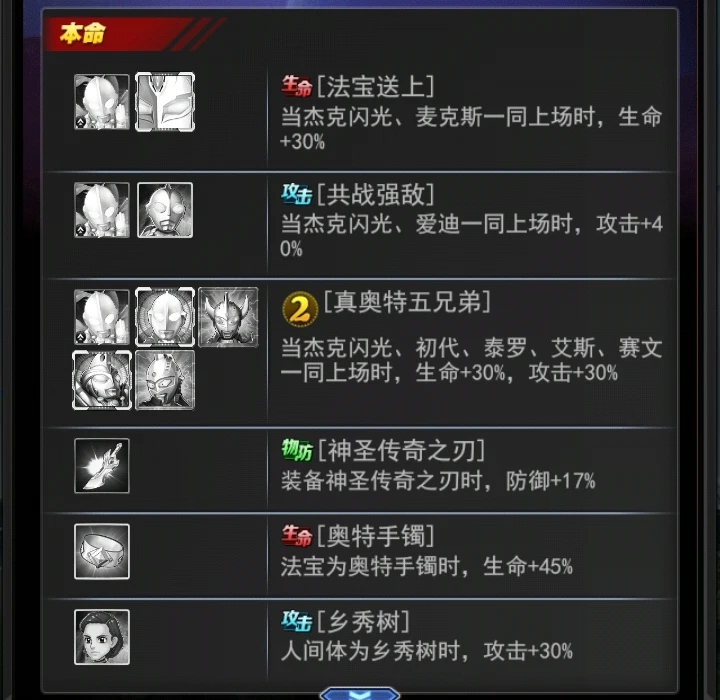 +12 奥特超级光线 每当队友受到致命伤害时,自身造成的所有伤害提高25%,持续2回合;并施放[特技]对敌方攻击最高的目标造成400%的伤害,使目标造成的所有伤害降低35%,持续2回合;额外使目标抗暴率降低35%,持续2回合