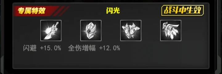 +11火花一闪 闪避率+25%。自身主动技击败任意目标后,[特技]对敌方随机2名目标造成200