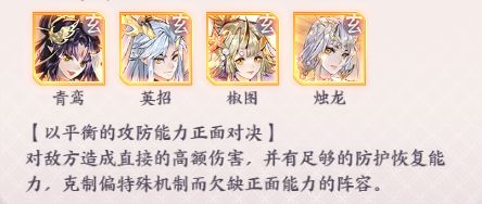 结合上述优缺点,根据青鸾和英招的技能特性,剩下的两个阵容位置应该配置上具有以下特点的妖灵:①拥有回血净化能力的辅助妖灵,或为己方提供护盾的防御妖灵 ②可以使队伍攻击手段多元化的攻击妖灵。