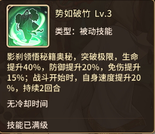 魂器35级:【竹烟松墨】Lv3可以在被控制状态下使用,且【墨竹林】持续回合数+1(至3回合);额外提升自身生命上限10%