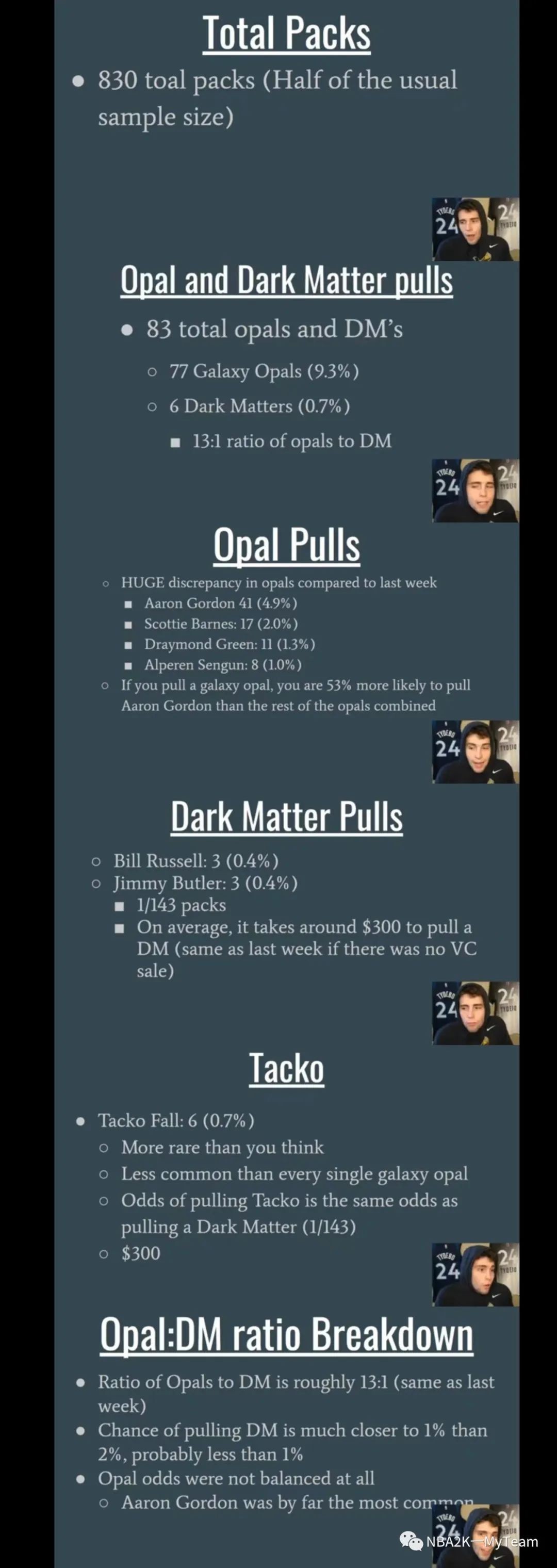 830个VC卡包,一共出了143张主题球员卡,其中包括77个银河,6个暗物质。