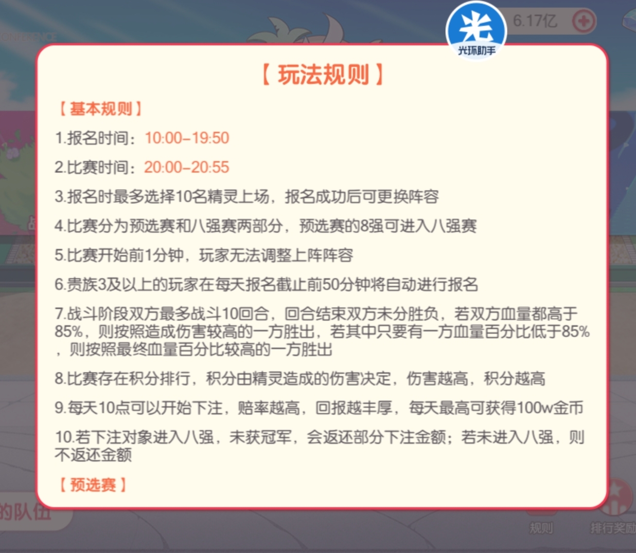 报名时间和石英差不多,不同的是这个需要手动保命,也可以在中午领体力的时候报名。后面就不用去管了,除非是你有新精灵需要上阵或者是你需要押注。