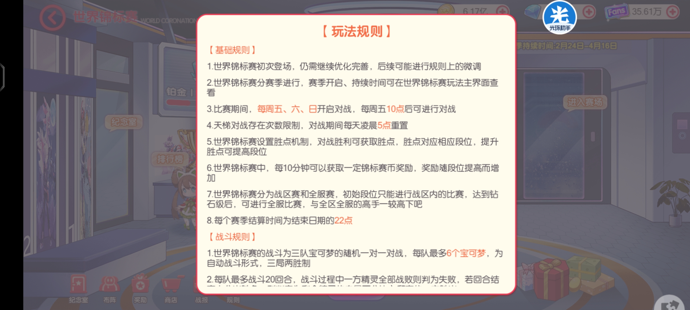 跨服的石英一星期只需要报名两次,分别是周一和周五,和石英同理,也可以在中午领体力的时候报名。要注意的是需要在周二和周六的晚上七点十五左右上线看对手是谁然后调整队伍。