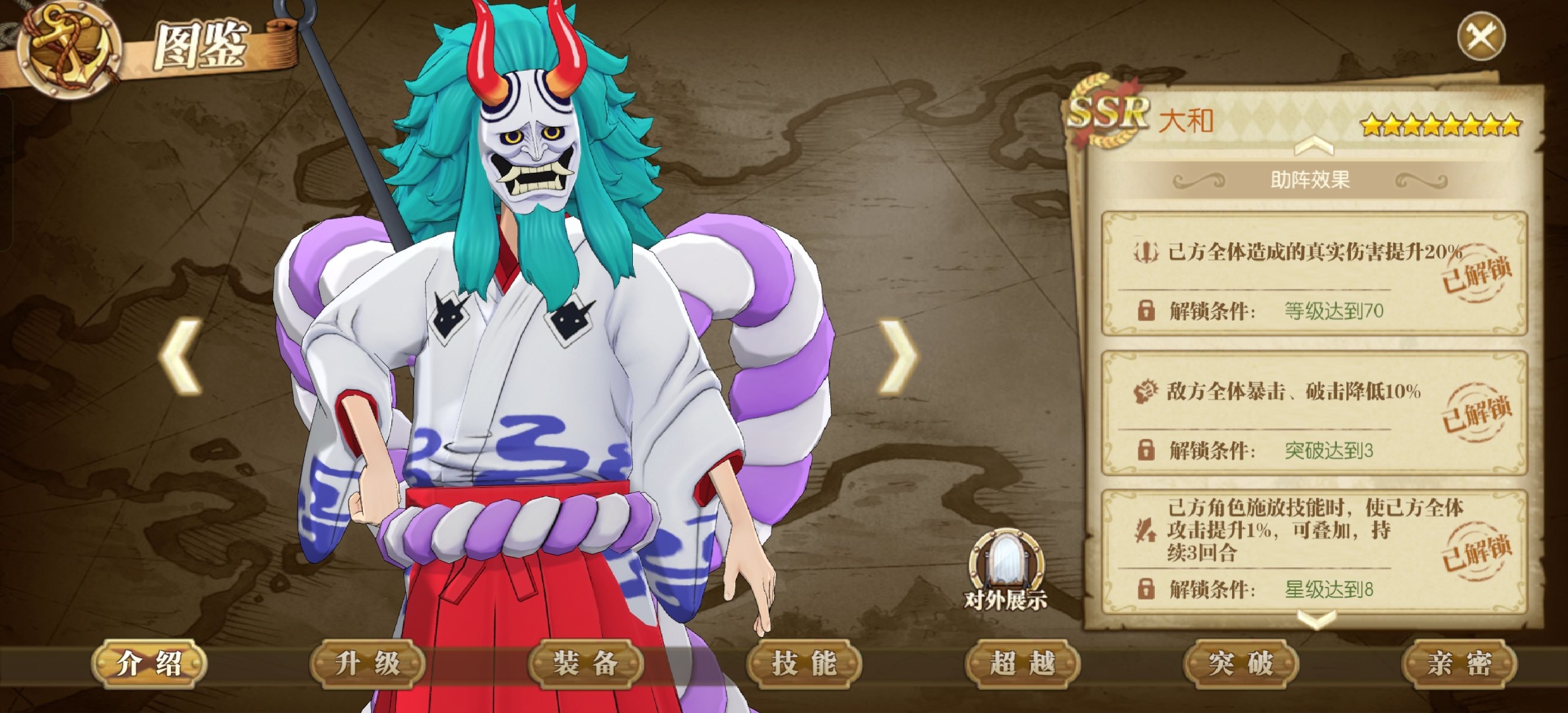 大和能够降低对面10%的破击,但是这个破击对开局免疫的凯多来说没有啥意义,而且现在大和一半都是在上面站着不会去干架。