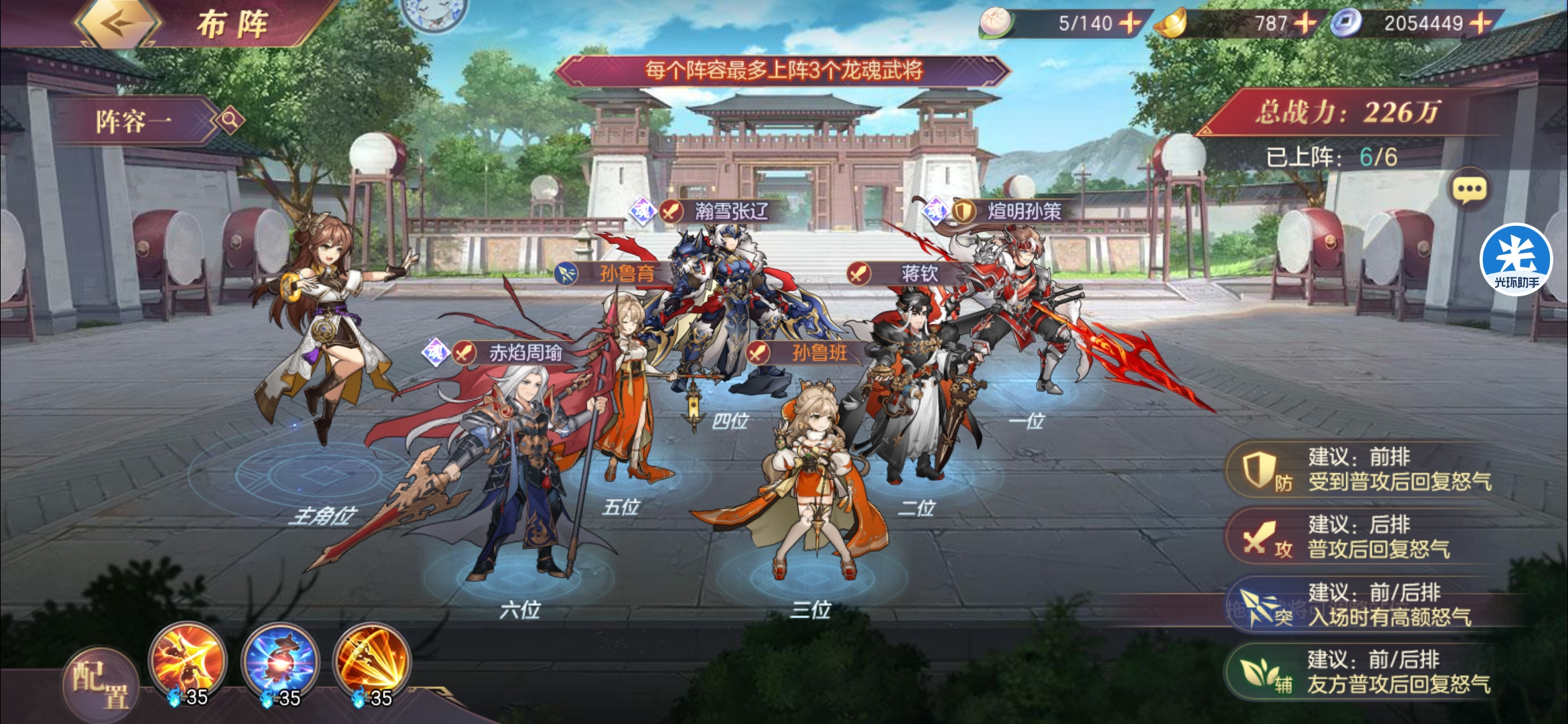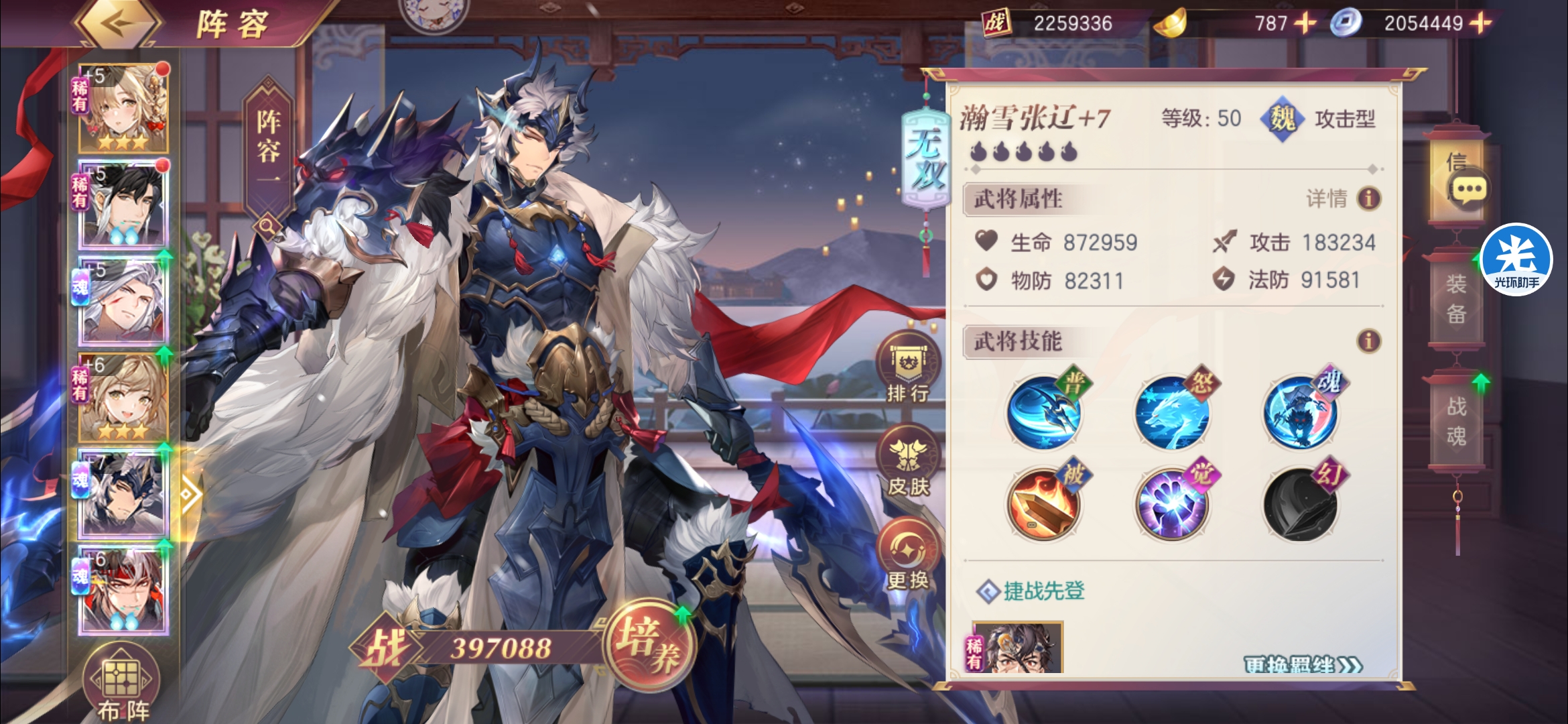 都放置在第一列就是为了对位敌方的瀚雪张辽,吸收大量输出,我方其他武将有时间和机会打出作用。