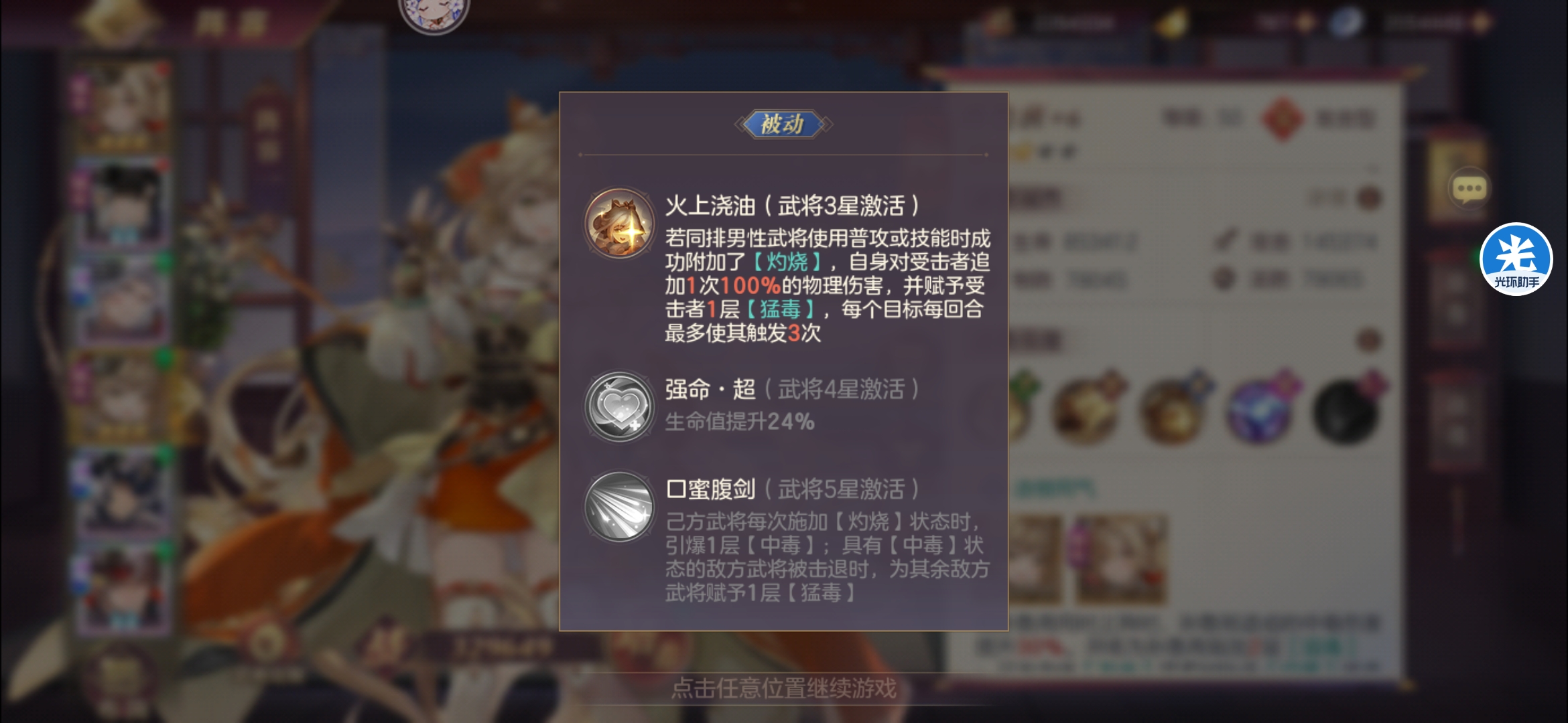 三火的失效效果,一个100%的制裁效果,防张辽姜维等主输出的吸血,防王元姬张宁等奶妈武将的抬血,对任何队伍和武将都是强烈的打击。
