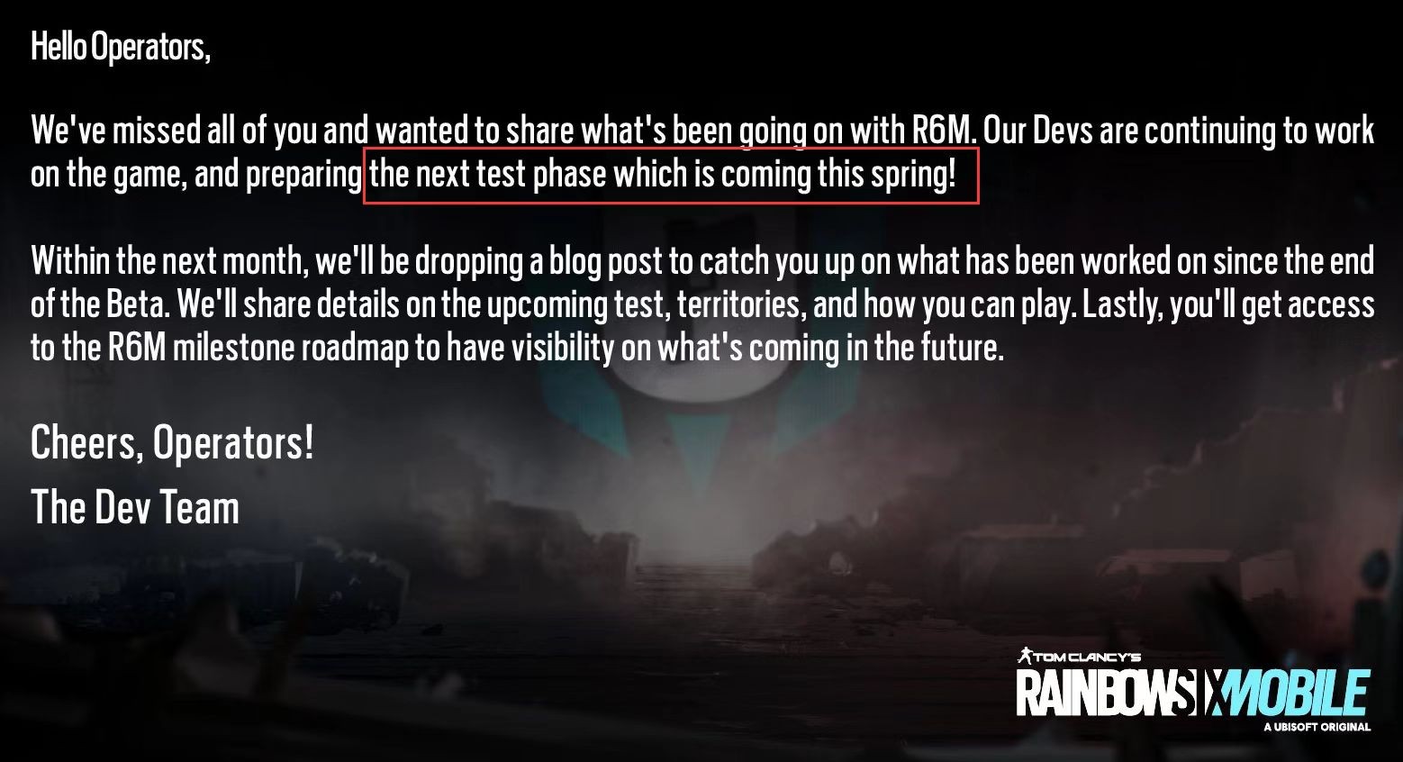 2月份的时候育碧财报里有提到,《彩虹六号M》将在2023~24财年(2023年4月1日~2024年3月31日) 期间推出,相信再经过几轮测试,游戏就能很快交到每个玩家的手上了!